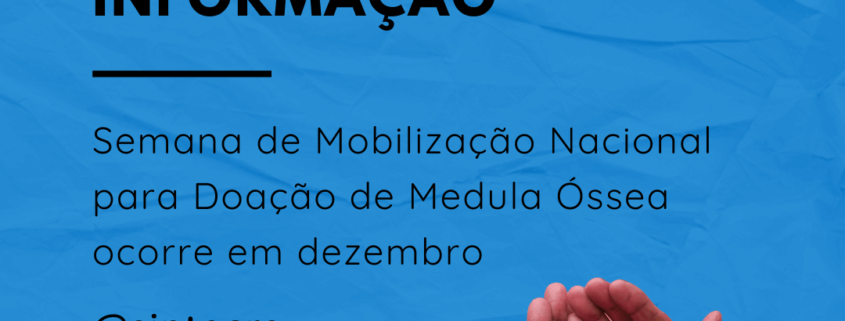 Semana de Mobilização Nacional para Doação de Medula Óssea ocorre de 14 a 21 de dezembro