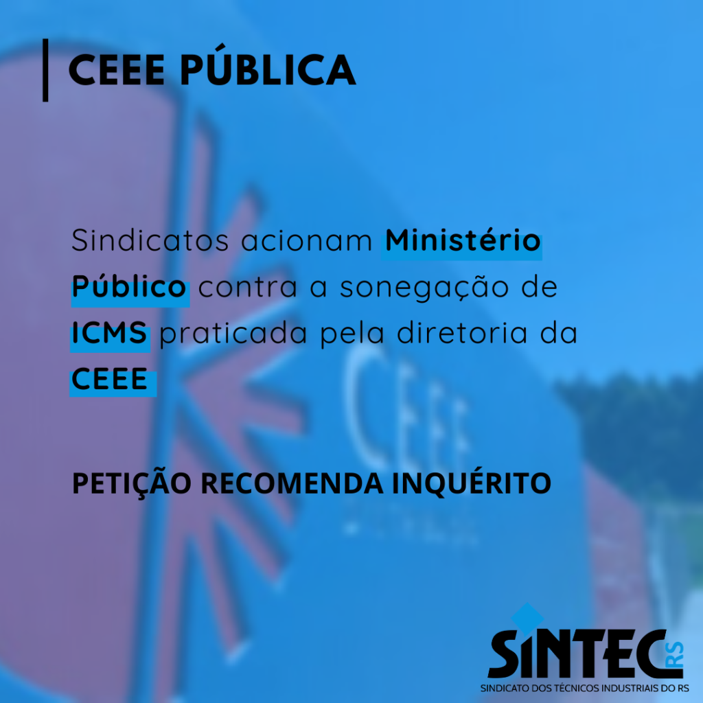 O SINTEC-RS, em parceria com o SENGE-RS, SENERGISUL, SINDAERGS, SCPA e SINDECON, protocolou um pedido de instauração de inquérito investigativo junto à Promotoria de Defesa do Patrimônio Público de Porto Alegre contra a sonegação de ICMS praticada pela diretoria da CEEE.