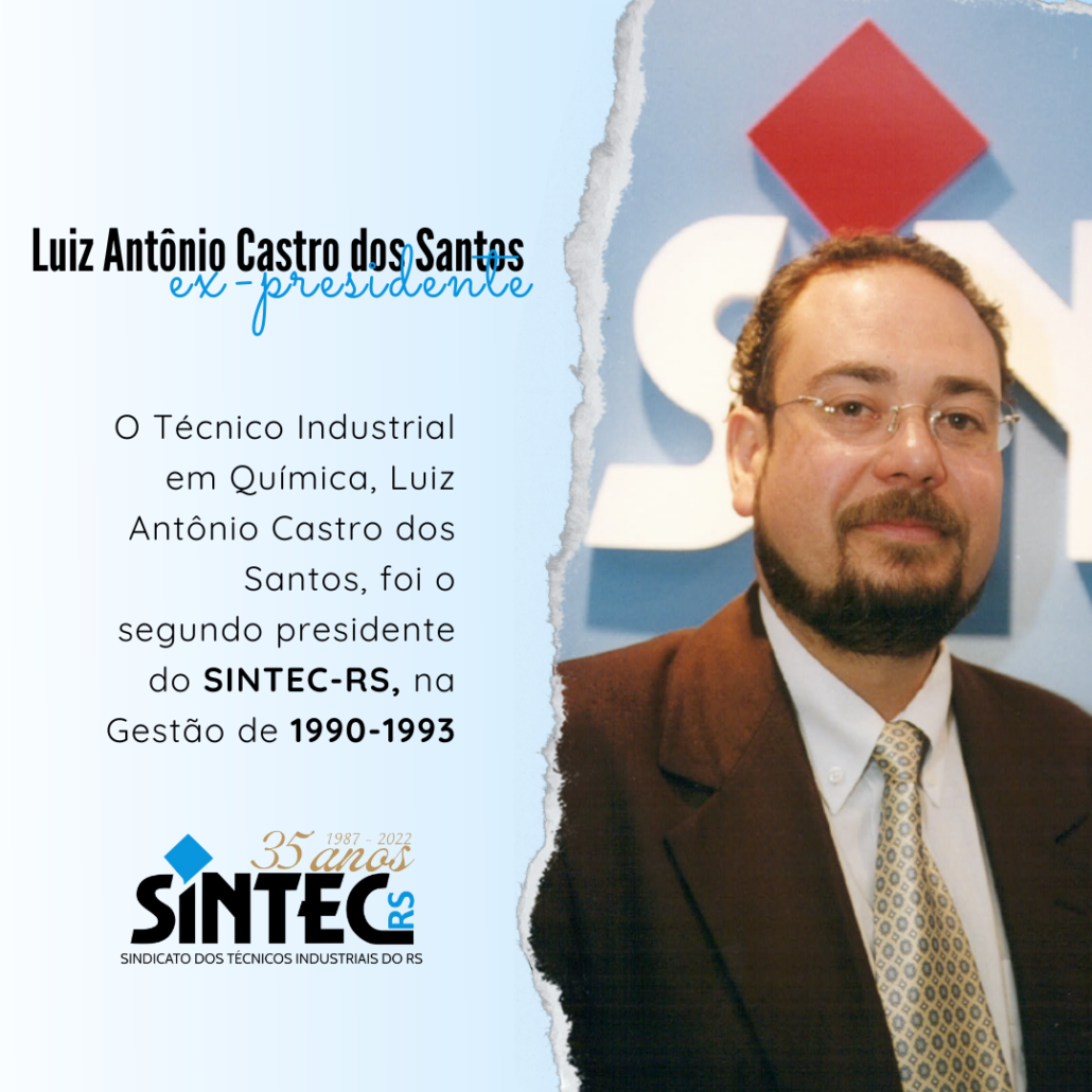 O Técnico Industrial em Química, Luiz Antônio Castro dos Santos, foi o segundo presidente do SINTEC-RS e esteve na Gestão de 1990-1993.