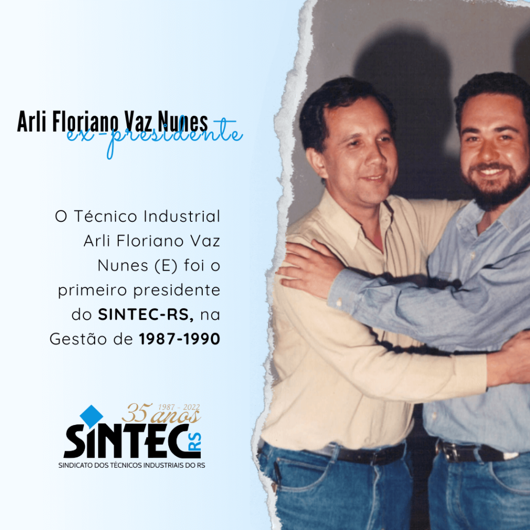 O Técnico Industrial Arli Floriano Vaz Nunes foi o primeiro presidente do SINTEC-RS e esteve na Gestão de 1987-1990.