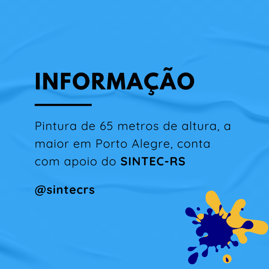 A maior pintura já feita em Porto Alegre, com 65 metros de altura e 15 metros de largura, conta com o apoio do SINTEC-RS em sua realização. A obra de arte cobrirá a lateral do prédio do Departamento Autônomo de Estradas de Rodagem (Daer)/Procuradoria-Geral do Estado (PGE) e será pintada pelos artistas Mona Caron, da Suíça, e o paulista Mauro Neri.