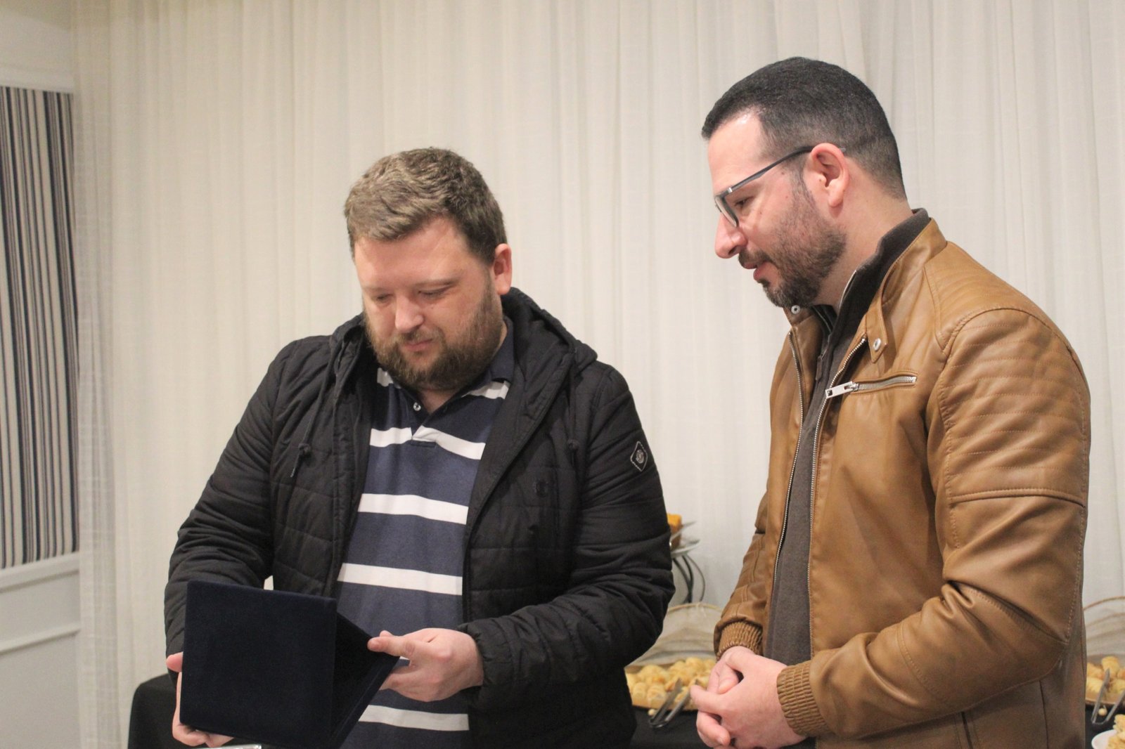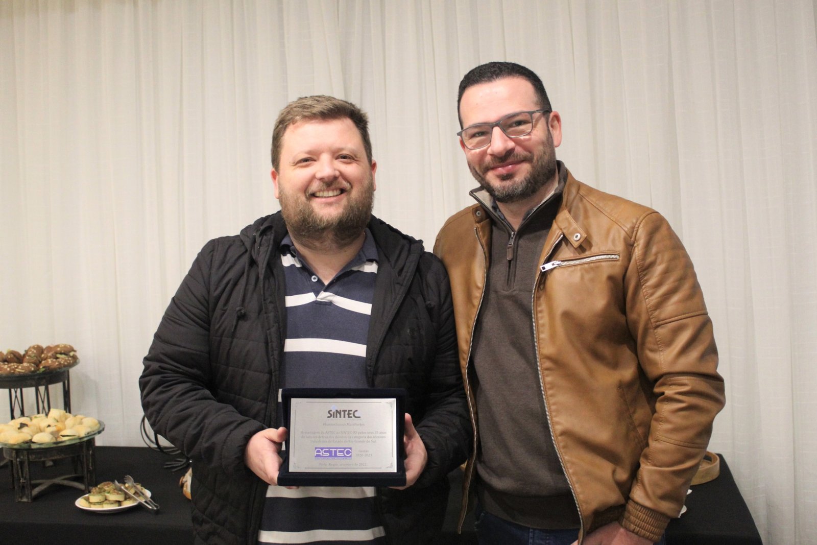 Rodrigo Gomes, diretor financeiro da ASTEC, entregou em nome da Associação uma homenagem ao SINTEC-RS pelos 35 anos de luta pela categoria dos Técnicos e Técnicas Industriais do Rio Grande do Sul.
