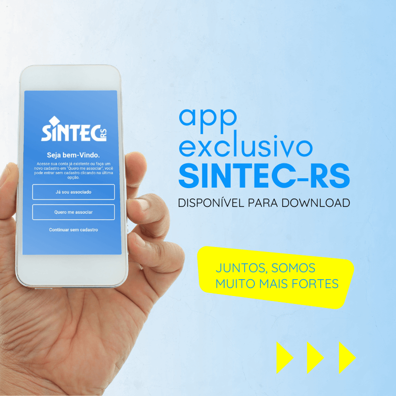 Os Técnicos e Técnicas Industriais que não são associados ao SINTEC-RS também podem acessar o aplicativo, que está disponível para download na Play Store e em breve na App Store, para utilizar as principais funcionalidades.