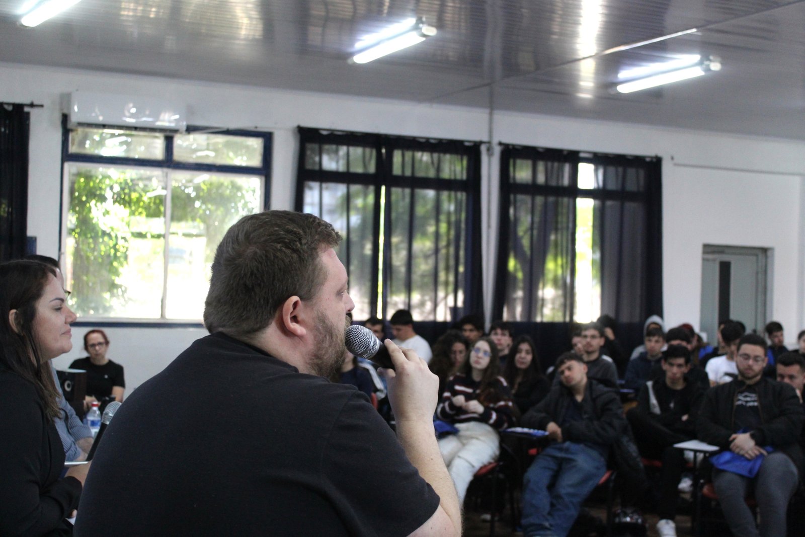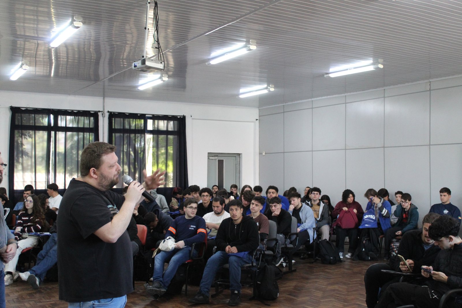 A atividade foi direcionada aos alunos do terceiro e quarto ano e abordou a importância da atuação sindical, os direitos trabalhistas e o suporte jurídico oferecido aos profissionais técnicos.