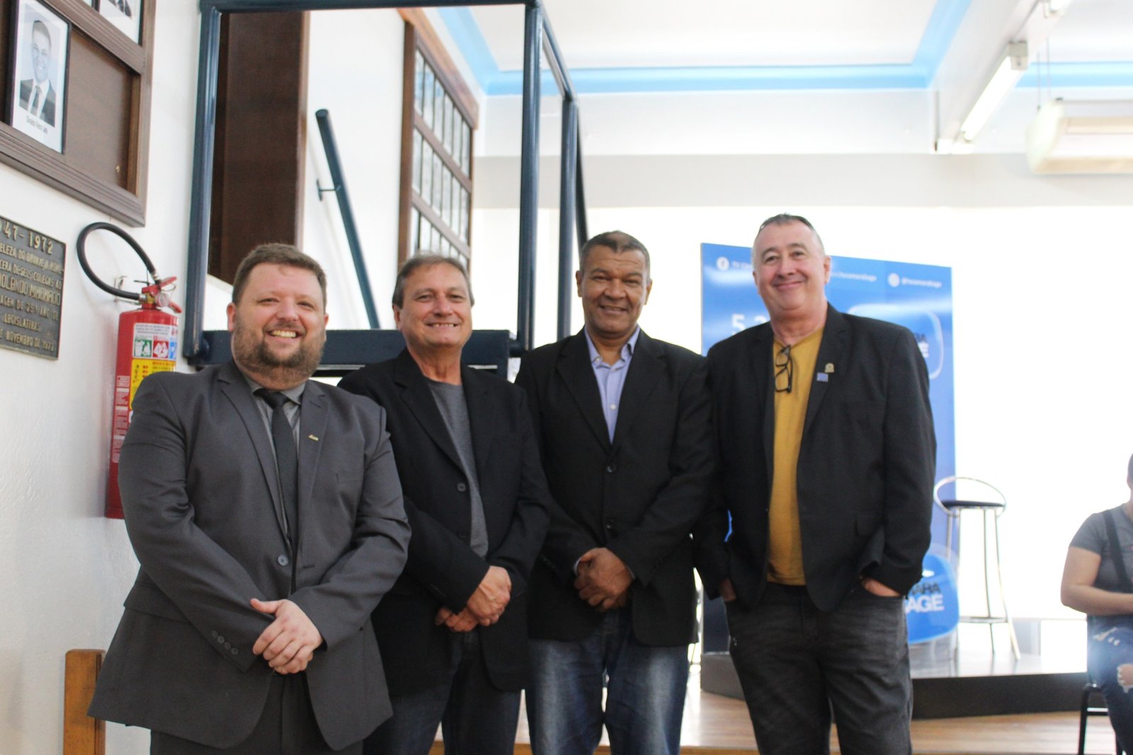 O presidente do SINTEC-RS, César Borges, e os diretores Fábio Menger, Marlon da Costa, Paulo Motta, Rogério Lopes, Lucas Kiekow e Mário Schmidt participaram da agenda em Bagé, representando a diretoria eleita. Para assistir a gravação do evento, clique aqui.