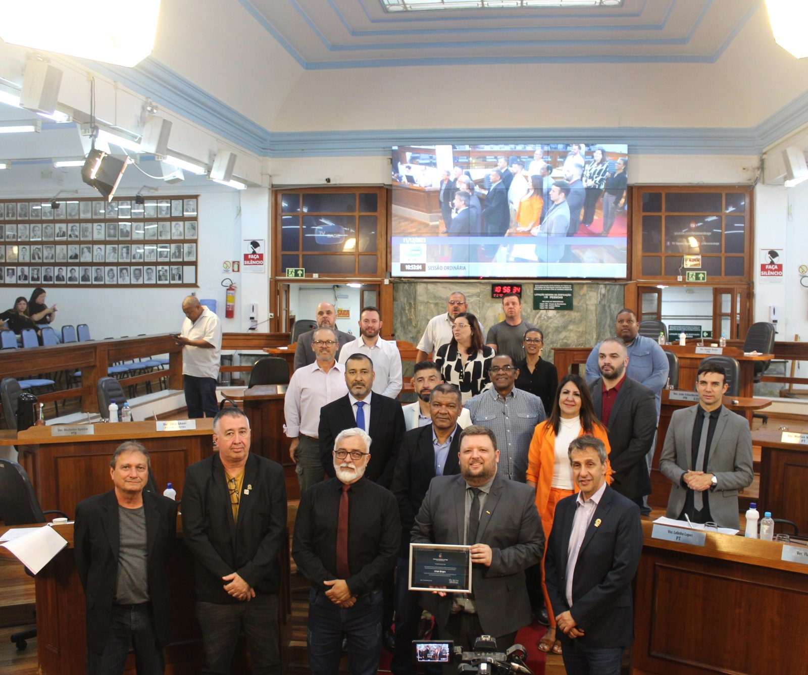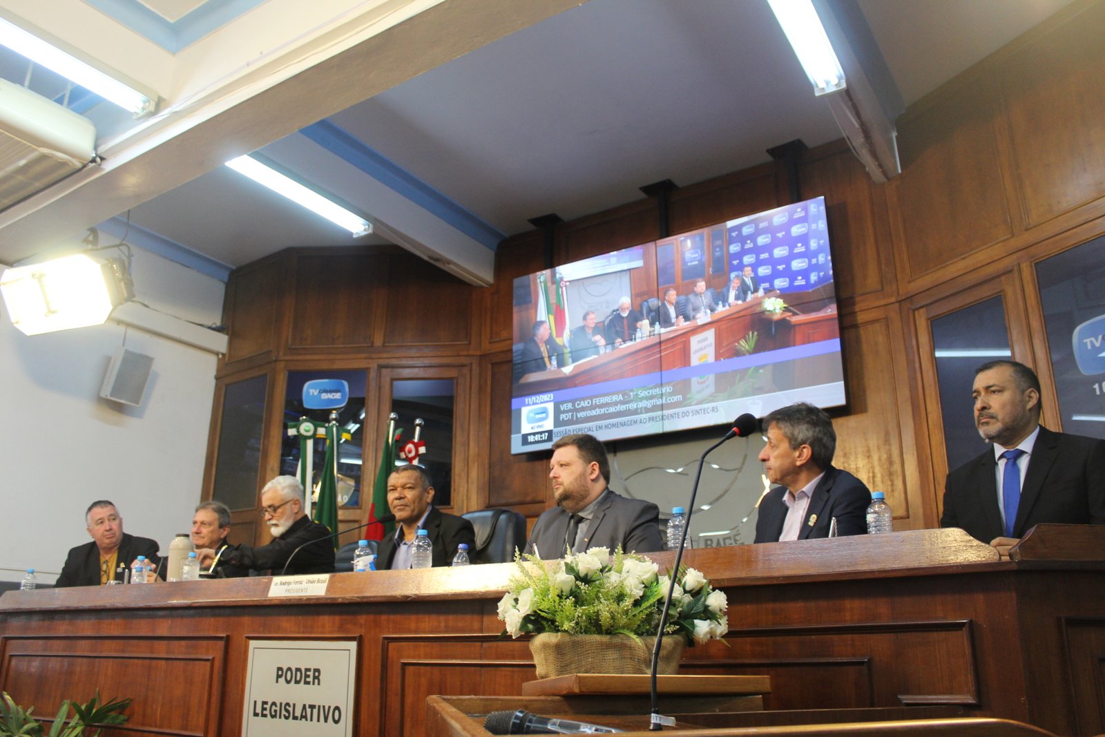 Na manhã desta segunda-feira, 11, o SINTEC-RS foi homenageado em Sessão Especial na Câmara de Vereadores de Bagé. A Sessão foi de proposição do vereador Caio Ferreira, em homenagem à diretoria eleita para a Gestão 2023-2027 e ao presidente do sindicato, César Borges.