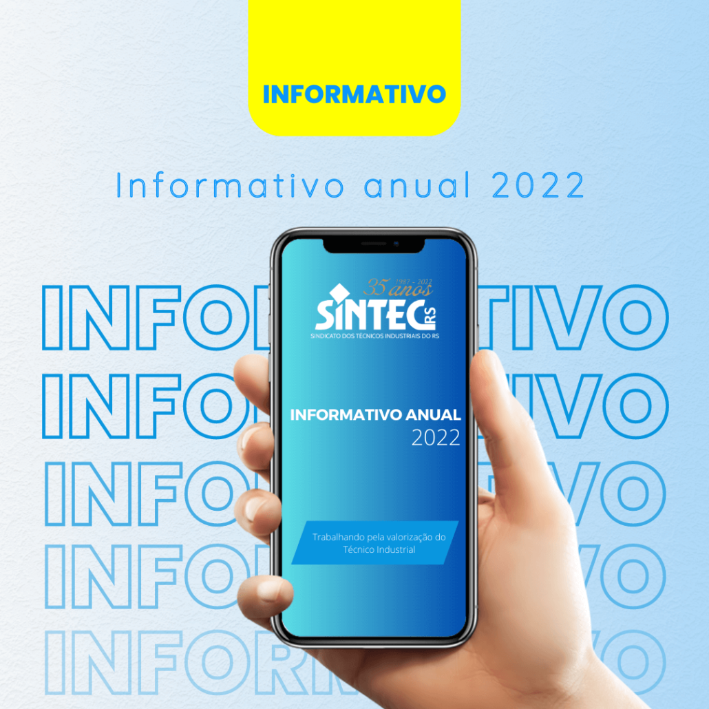 Em maio o SINTEC-RS lançou o Informativo Anual 2022, que reúne as ações da diretoria durante o último ano, bem como, os resultados e o balanço da atuação da Gestão 2020-2023 no sindicato. O material foi apresentando na assembleia geral ordinária de prestação de contas e destaca a comemoração de 35 anos do SINTEC-RS e alteração no Estatuto da entidade, além da mobilização em defesa dos direitos e interesses dos Técnicos e Técnicas Industriais.
