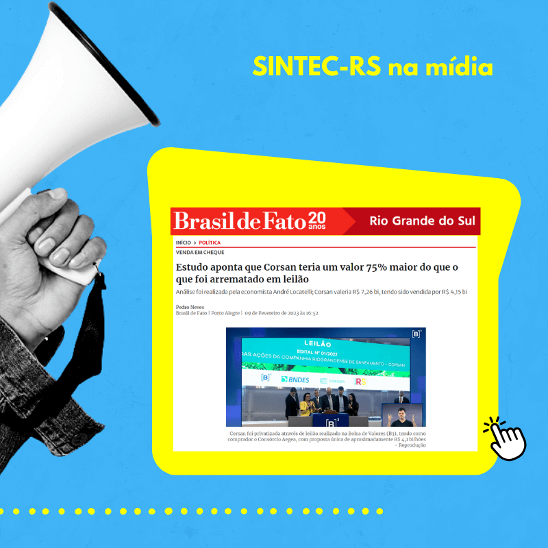 SINTEC-RS na mídia: estudo aponta que Corsan teria um valor 75% maior do que o que foi arrematado em leilão