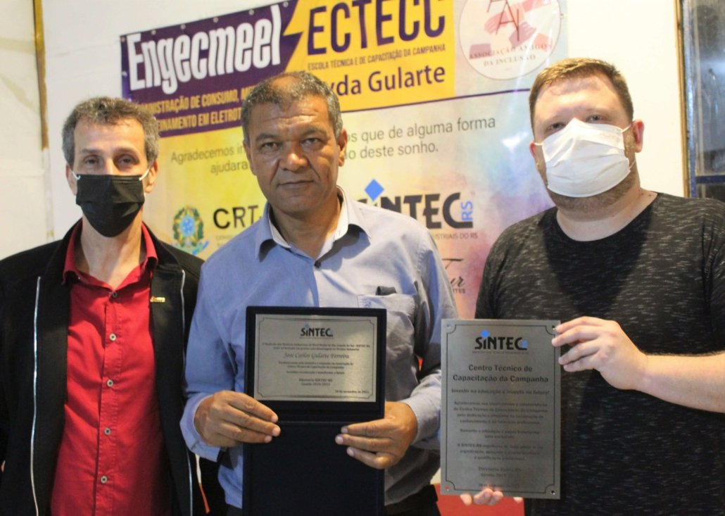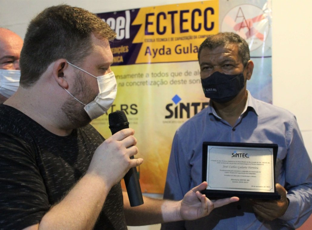 Na inauguração, o SINTEC-RS prestou uma homenagem ao vereador Caio Gularte parabenizando-o pela iniciativa e empenho na construção do Centro. A construção da escola possibilita a qualificação profissional, ampliando oportunidades no setor técnico.