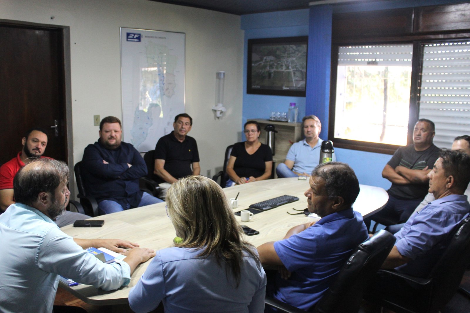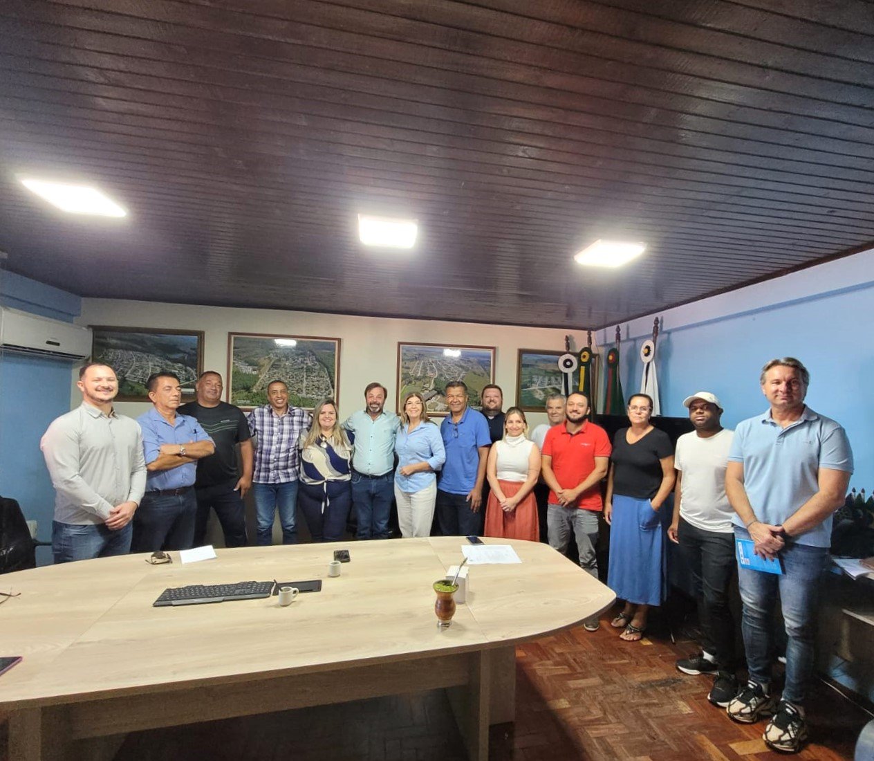 A reunião aconteceu na prefeitura da cidade e contou com a participação do prefeito Luiz Carlos Folador e da deputada estadual Adriana Lara, além de demais lideranças da região. O conselheiro do CRT-RS e ex-vereador de Bagé, Caio Ferreira, e o presidente do SINTEC-RS, César Borges, participaram da agenda. Na ocasião, o prefeito Luiz Carlos Folador destacou a necessidade de “trabalhar por uma transição energética justa”.