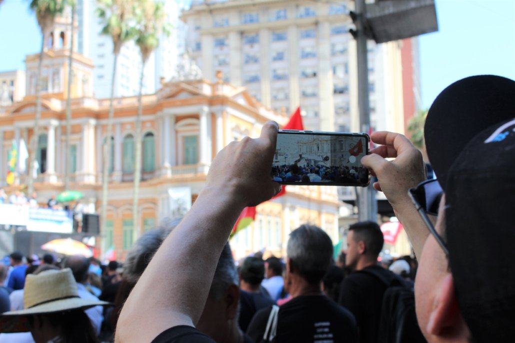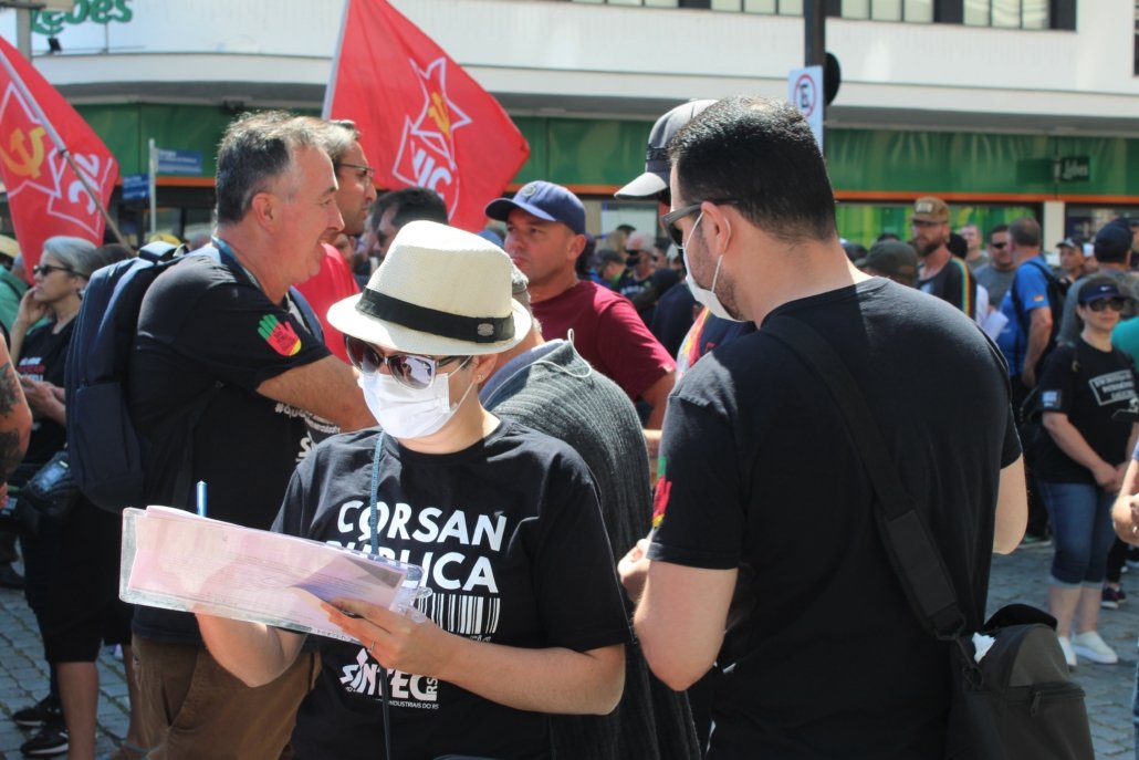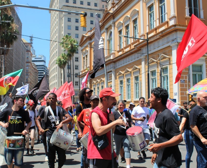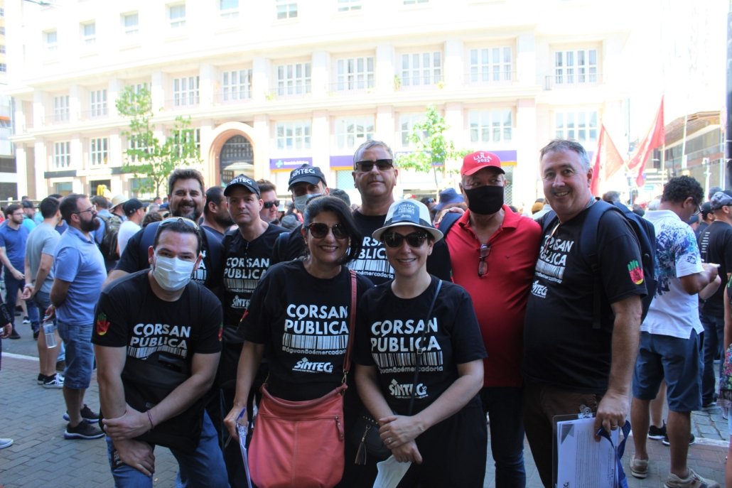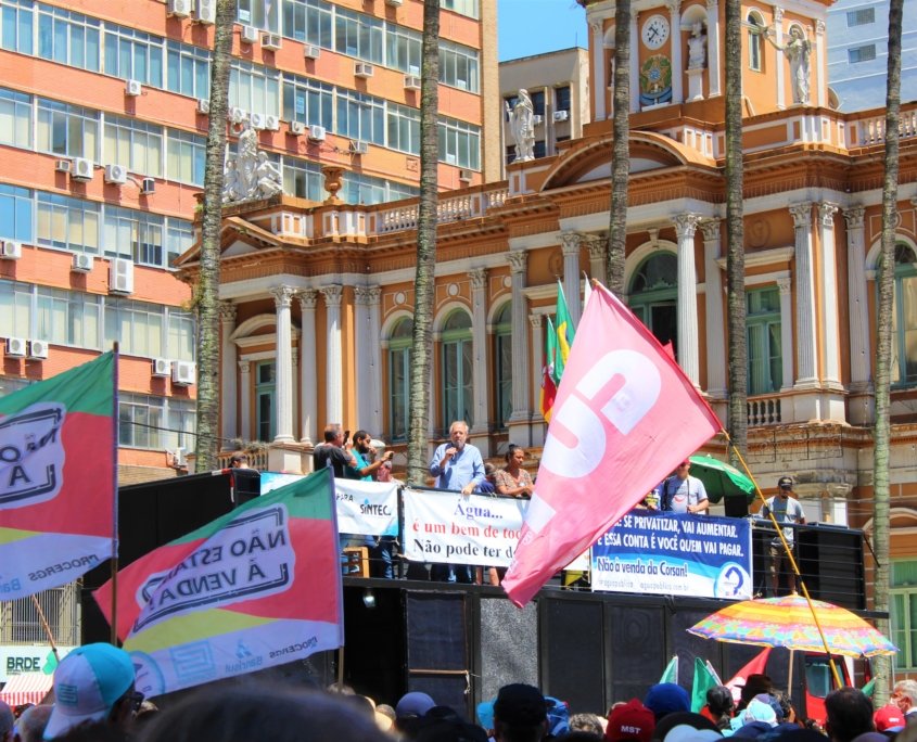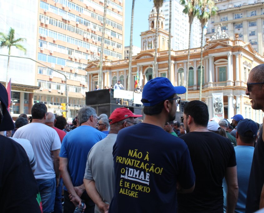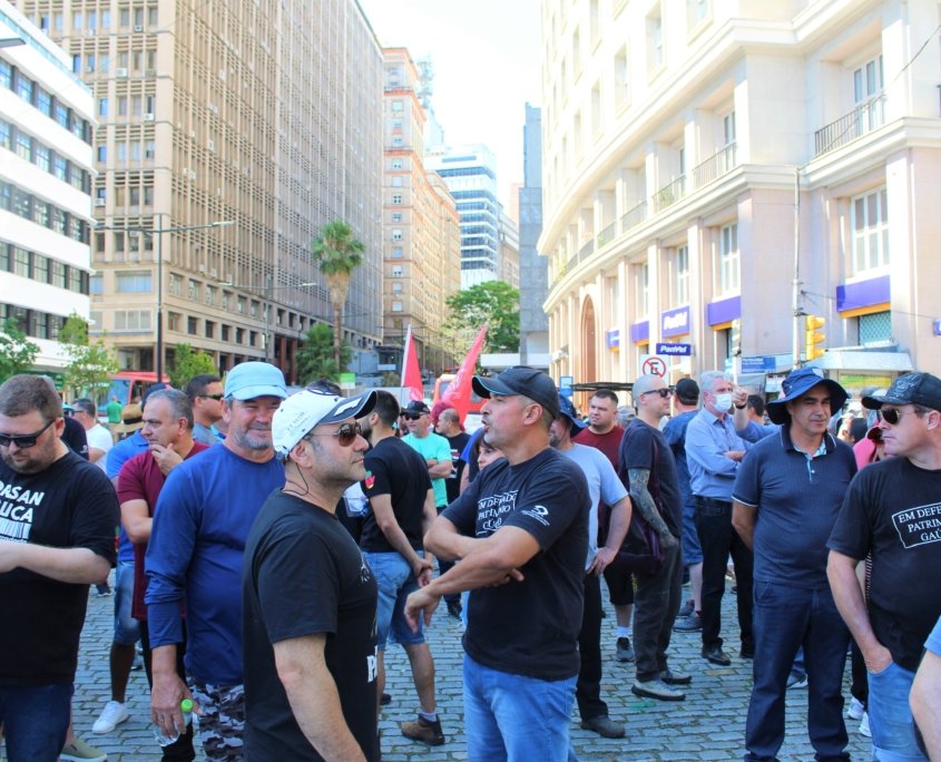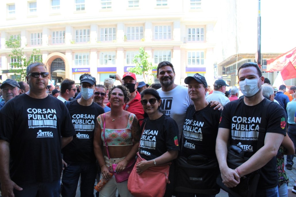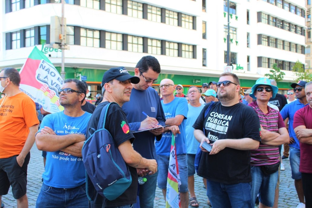 A manifestação, que defende a manutenção da Corsan e do DMAE públicos, reuniu sindicatos, trabalhadores e trabalhadoras das duas empresas, representantes da classe política e movimentos sociais na defesa da água pública.
