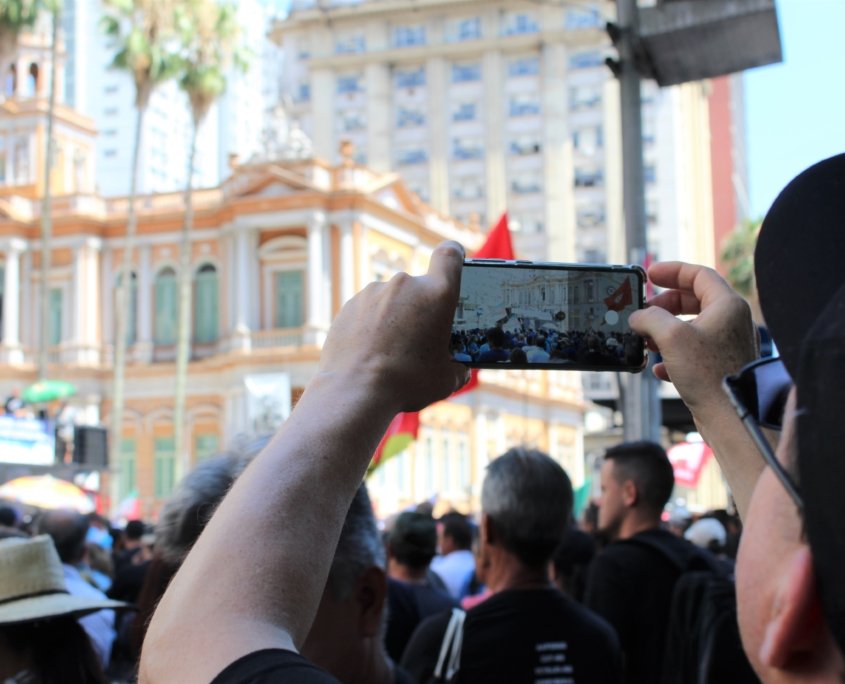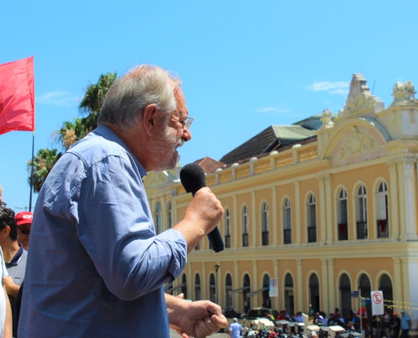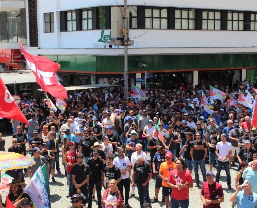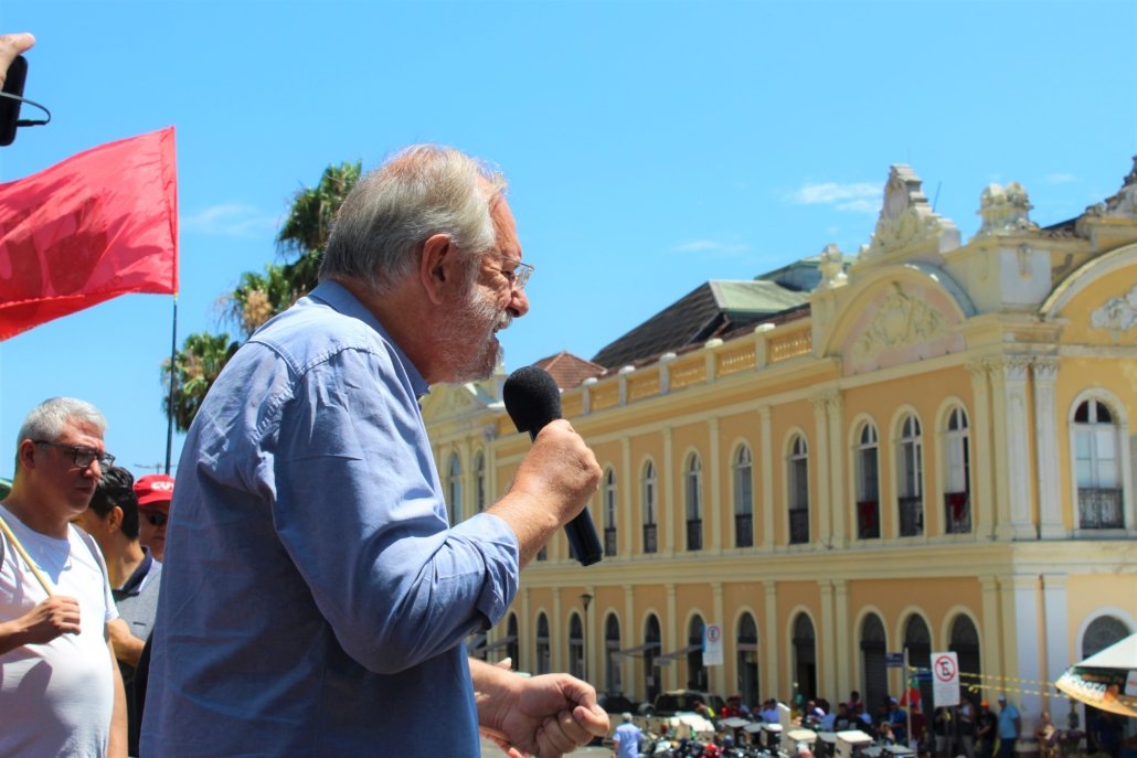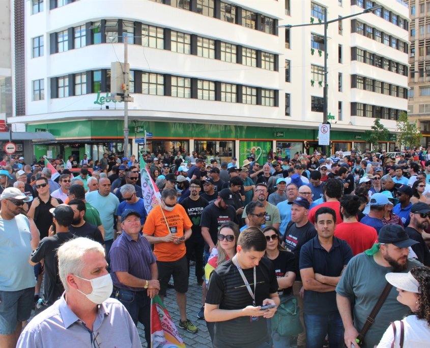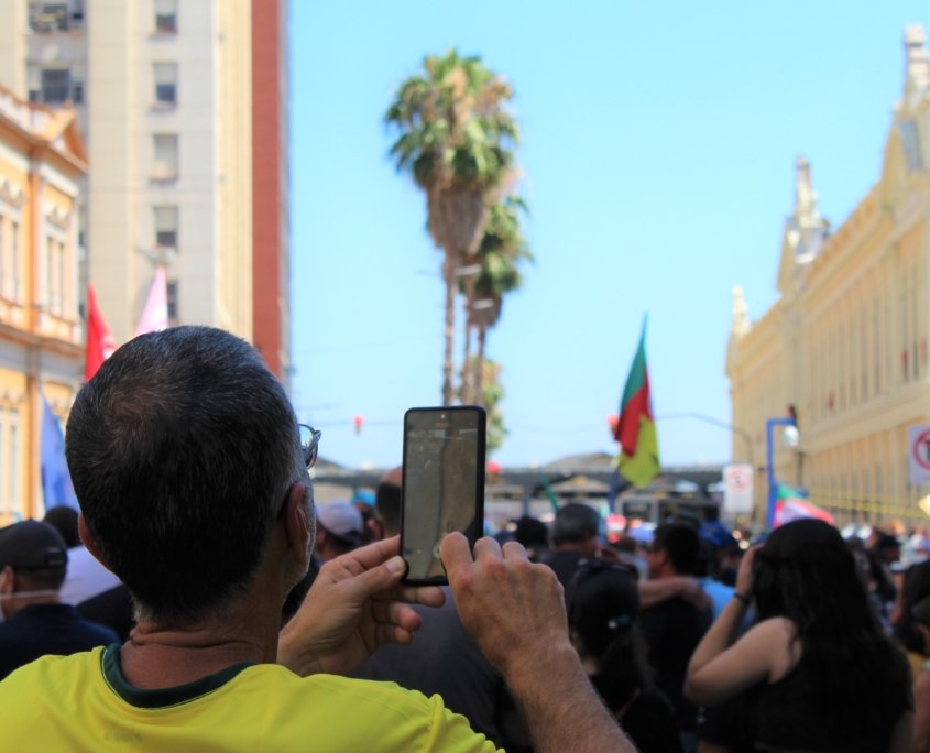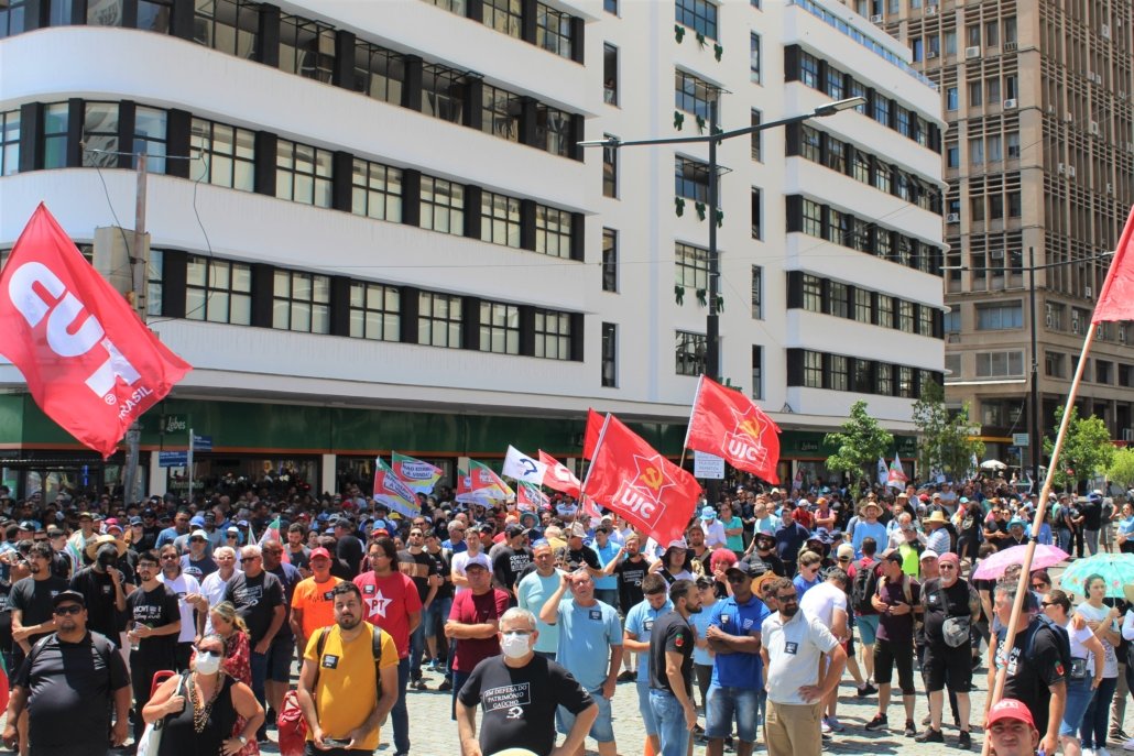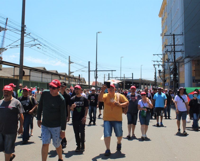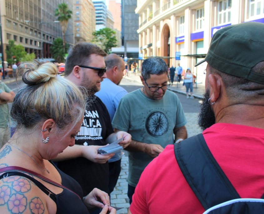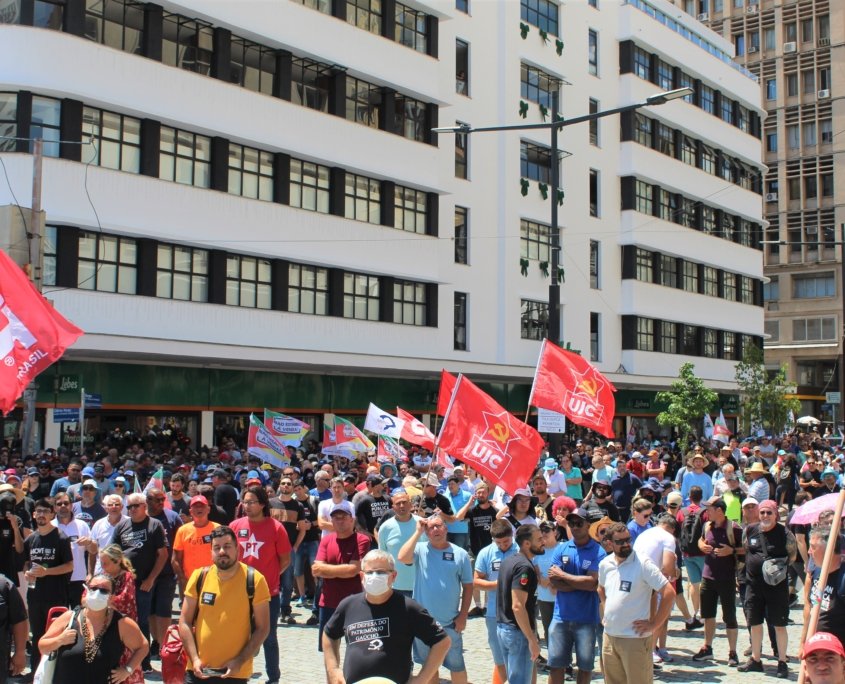 A manifestação, que defende a manutenção da Corsan e do DMAE públicos, reuniu sindicatos, trabalhadores e trabalhadoras das duas empresas, representantes da classe política e movimentos sociais na defesa da água pública.