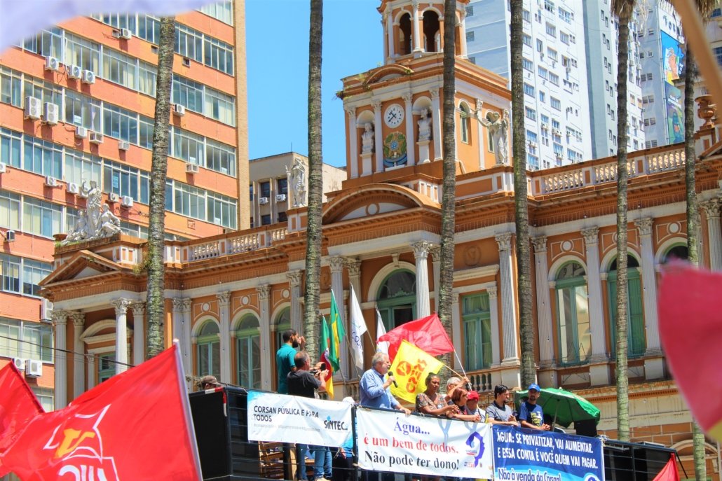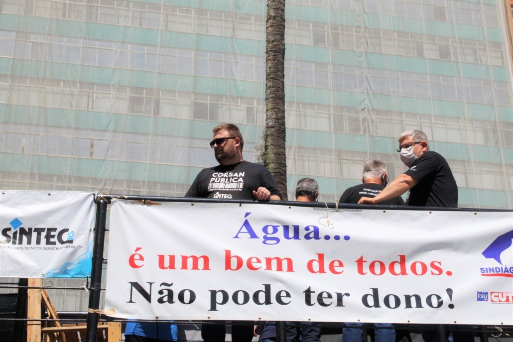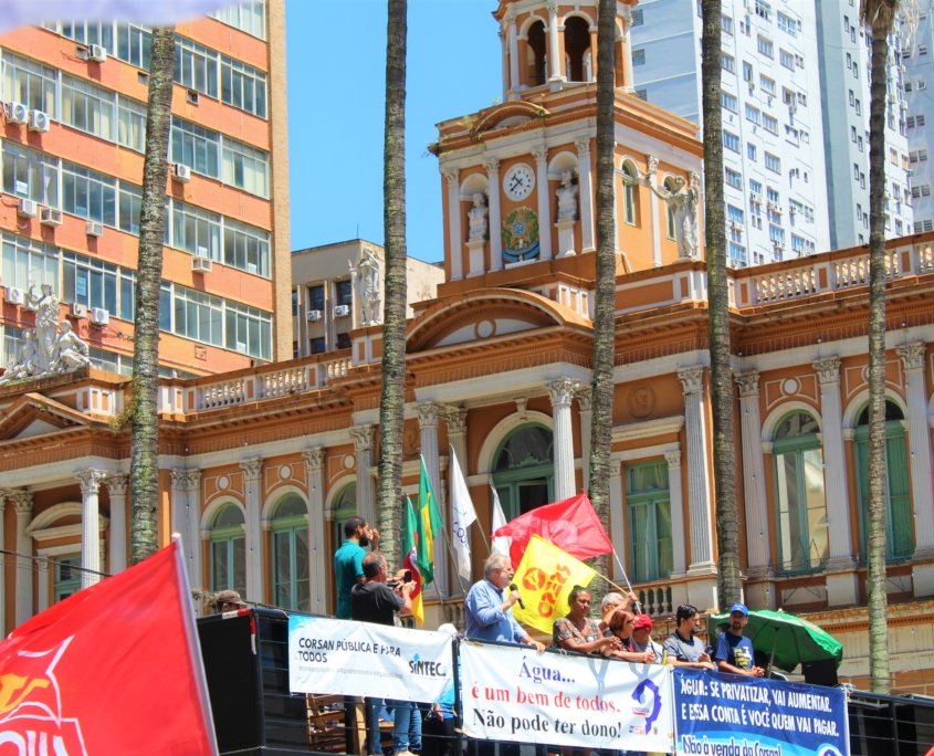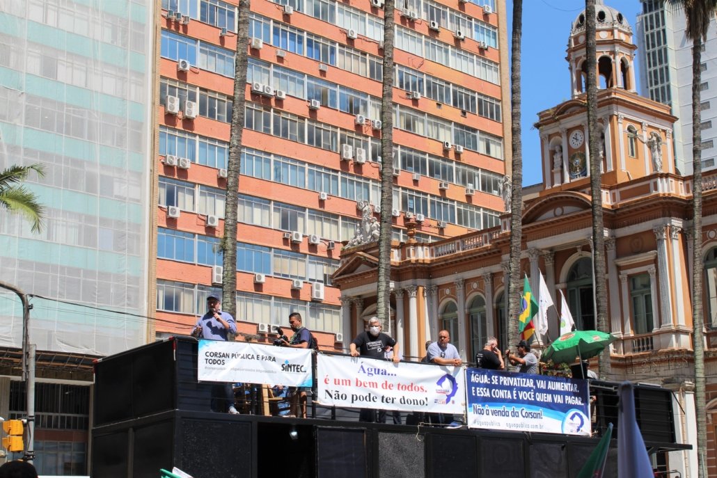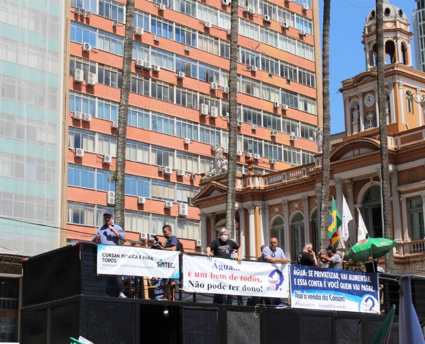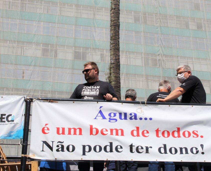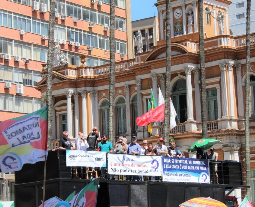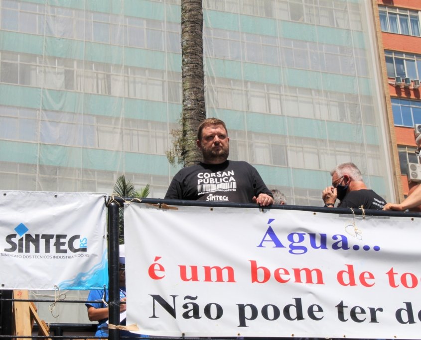 Na manhã da última quinta-feira, 8, o SINTEC-RS participou do ato em defesa da água pública realizado em Porto Alegre.