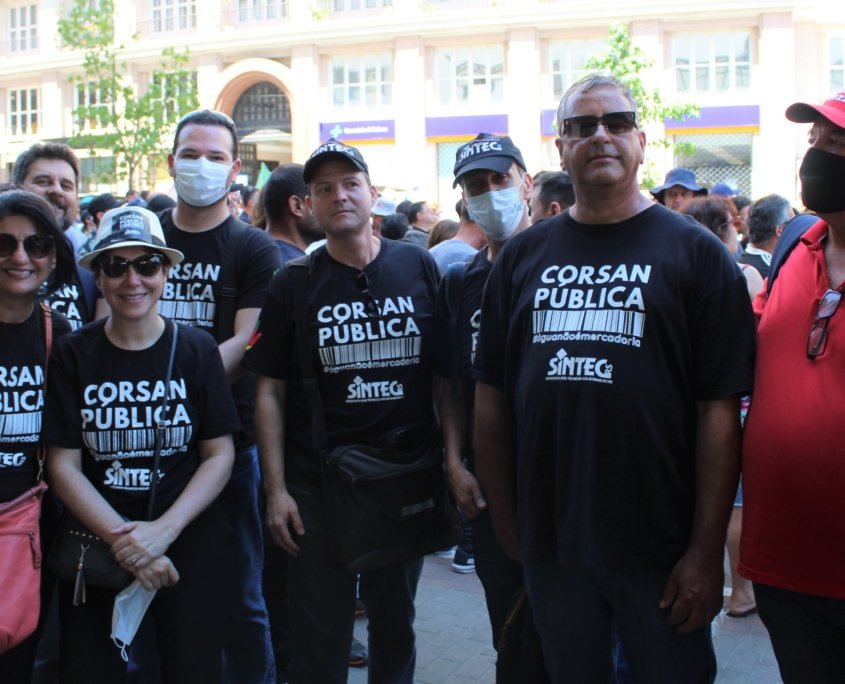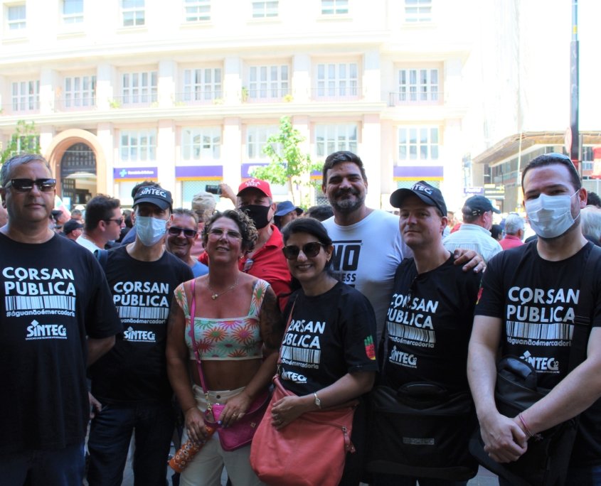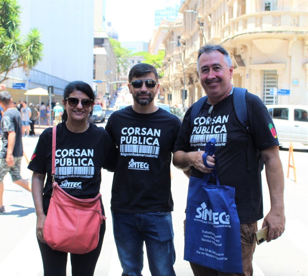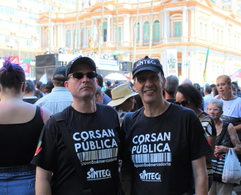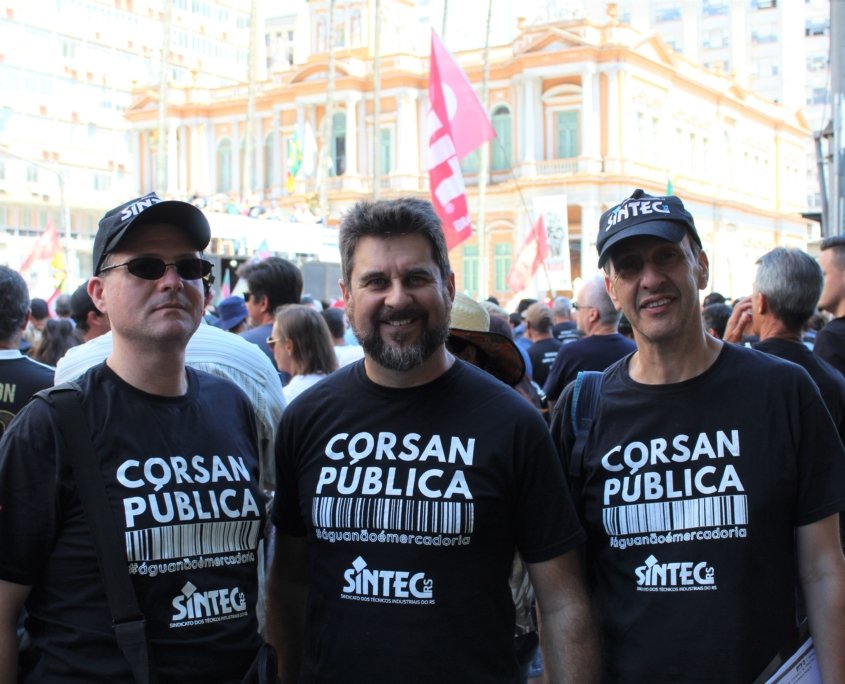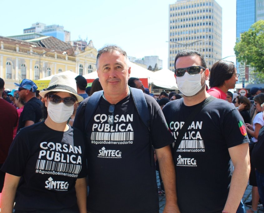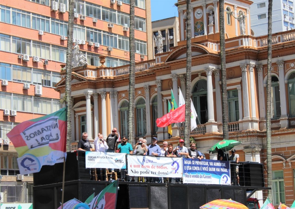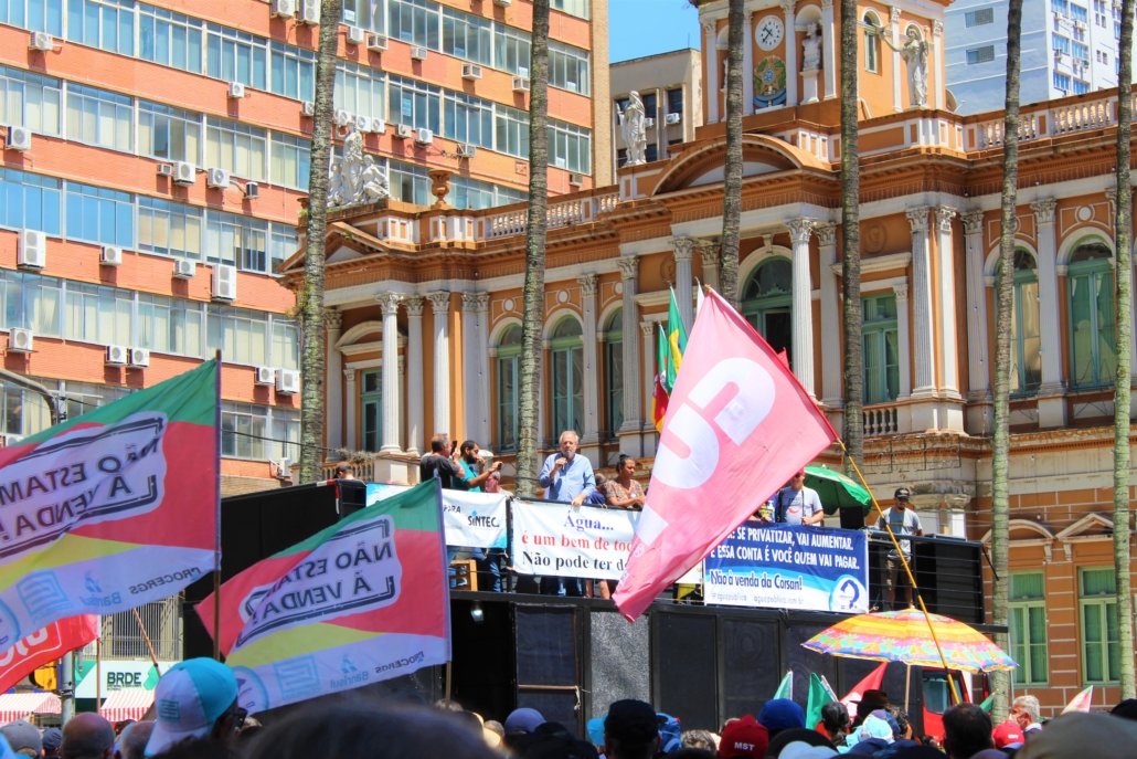 Na manhã da última quinta-feira, 8, o SINTEC-RS participou do ato em defesa da água pública realizado em Porto Alegre.