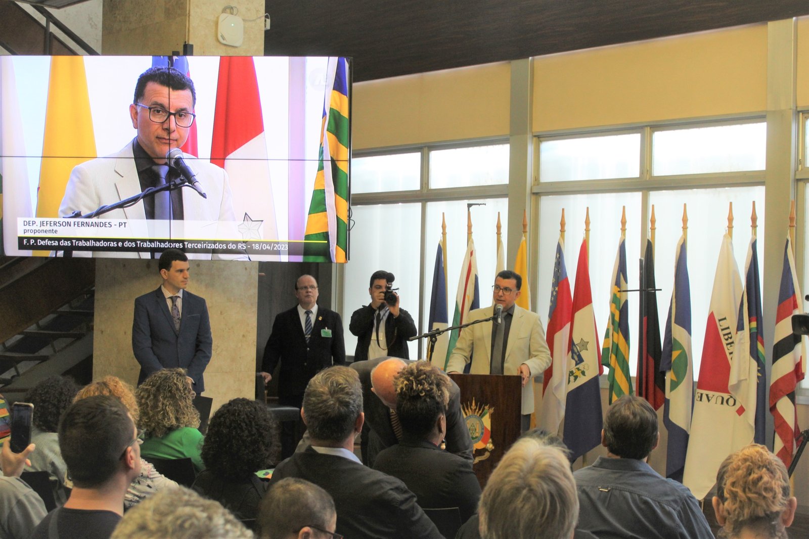 Na tarde desta terça-feira, 18, o SINTEC-RS participou do lançamento da Frente Parlamentar em Defesa dos Trabalhadores e das Trabalhadoras Terceirizados do RS, realizado no Salão Júlio de Castilhos, na ALRS. A Frente é de proposição conjunta da deputada Bruna Rodrigues e do deputado Jeferson Fernandes e tem o objetivo de defender os direitos dos trabalhadores e trabalhadoras terceirizados.