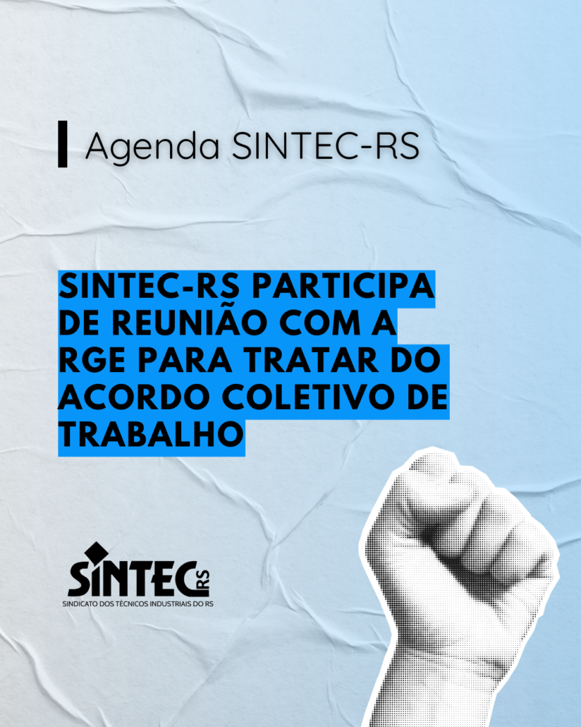 O SINTEC-RS participou, na manhã desta quarta-feira,8, de reunião com a RGE para dar continuidade às tratativas do Acordo Coletivo de Trabalho. Na ocasião, a empresa abordou apenas algumas cláusulas que terão adequação de texto em razão de atualizações na legislação.