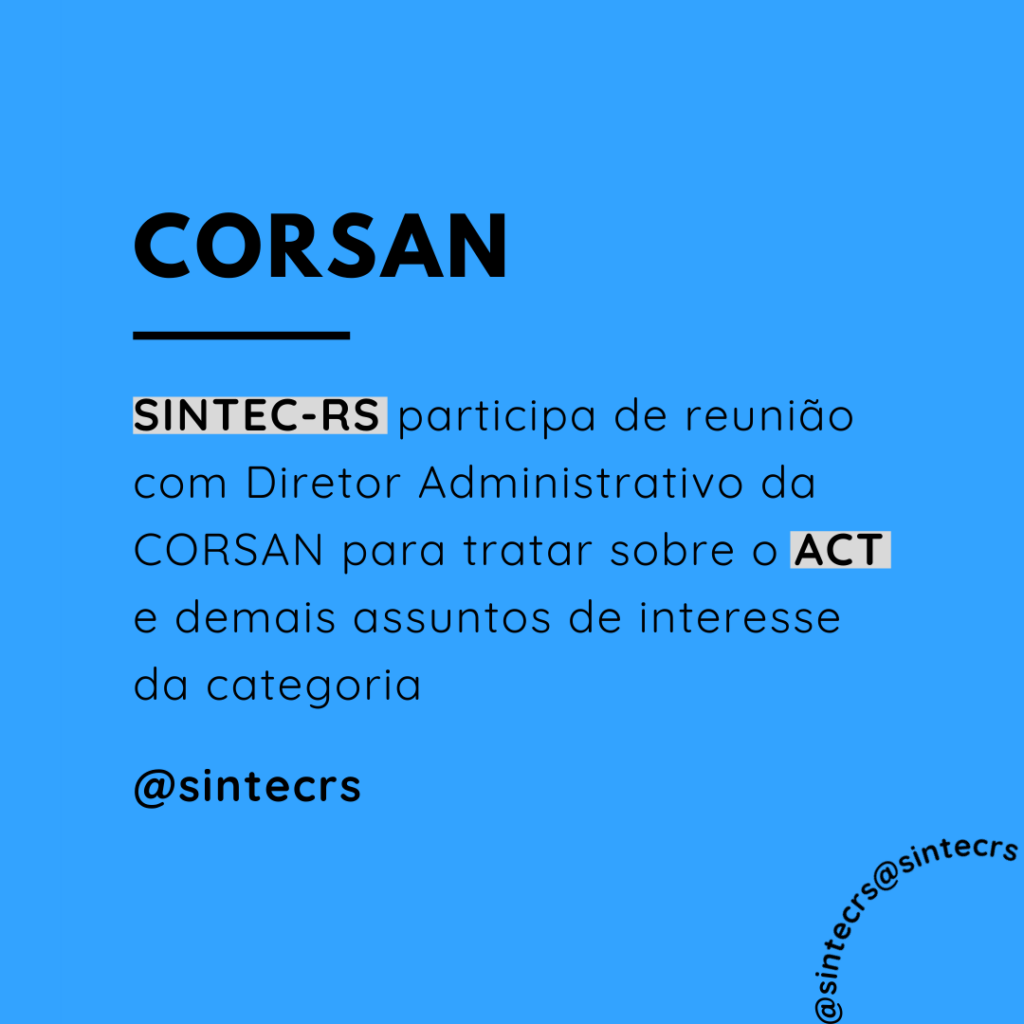 A diretoria afirma que responderá aos ofícios encaminhados pelo sindicato à CORSAN, dando retorno às solicitações da entidade. O SINTEC-RS aguarda a resposta oficial da empresa para um novo comunicado à categoria.