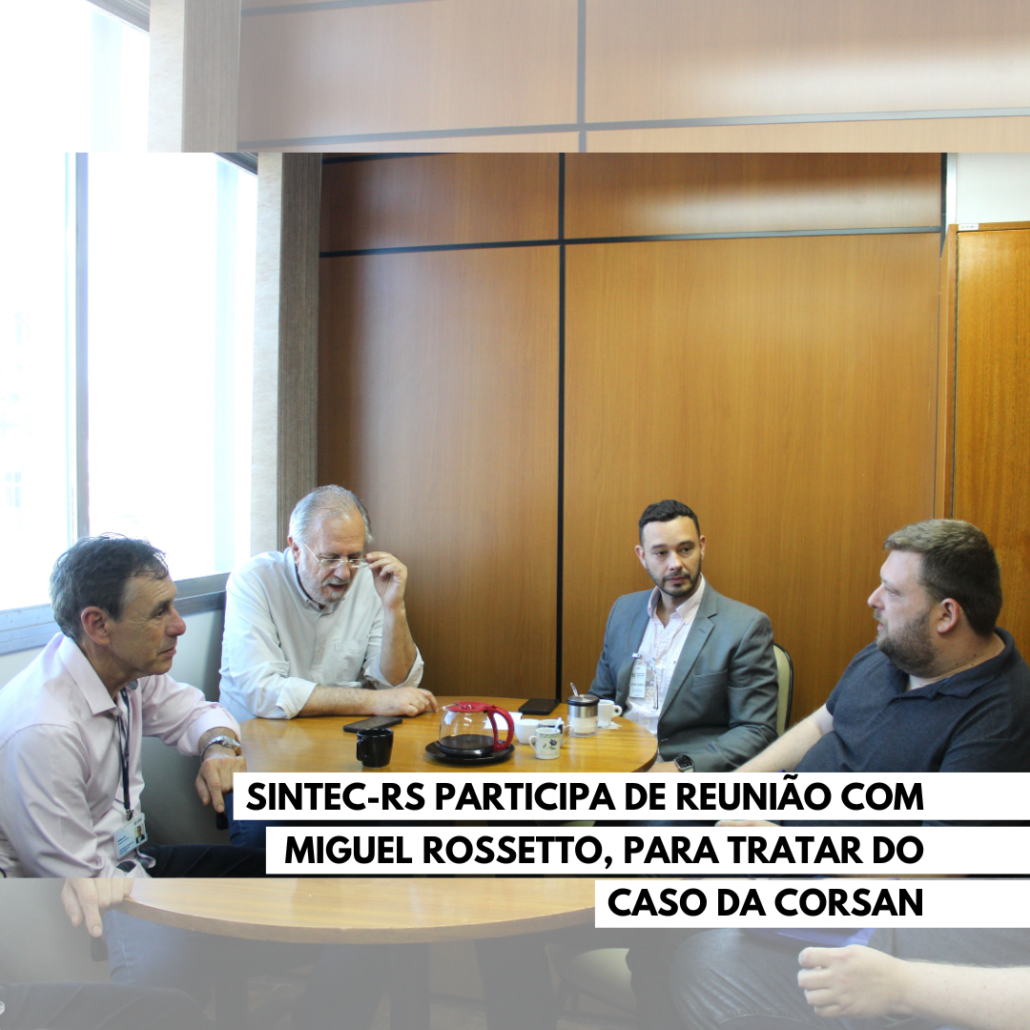 Na tarde da última segunda-feira, 6, o SINTEC-RS participou de uma conversa com o Deputado Estadual Miguel Rossetto para tratar do caso da CORSAN e alinhar possíveis ações e estratégias de atuação contra no âmbito do processo de privatização. Na ocasião, o presidente do sindicato, César Borges, destacou que entidade está disposição para construir ações em defesa da CORSAN junto com o mandato.