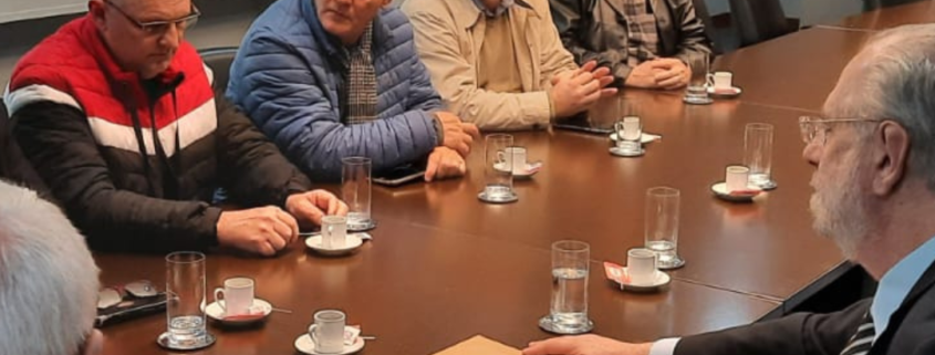 Na tarde da última terça-feira, 8, o SINTEC-RS participou de reunião com o Procurador Geral do Ministério Público do RS, Alexandre Saltz, para entregar novos documentos sobre a privatização da CORSAN. O vice-presidente e diretor financeiro do sindicato, Marcelo Valandro, esteve na reunião, que também contou com a participação do SINDIÁGUA/RS, representado pelo presidente Arilson Wünsch e o secretário geral Vinícius Giordani, e da CUT-RS, representada pelo presidente Amarildo Cenci, além dos deputados Miguel Rossetto e Zé Nunes, da deputada Stela Farias e da assessora do deputado Jeferson Fernandes, Luna Martins.
