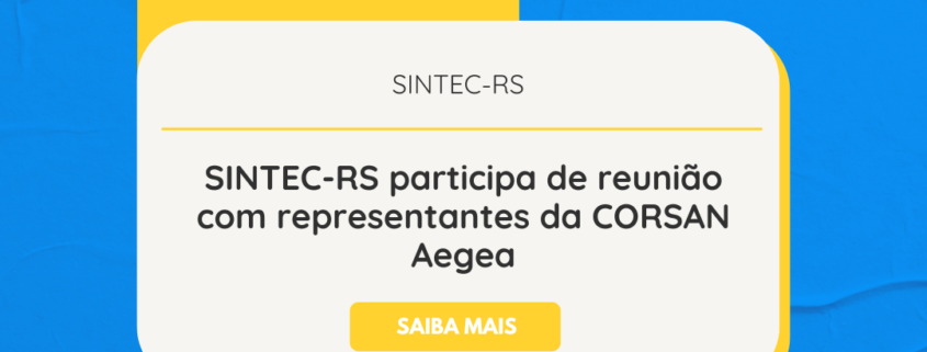 Na tarde desta sexta-feira, 16, o SINTEC-RS participou de reunião com representantes da CORSAN Aegea, na sede da empresa. O presidente do sindicato, César Borges, o diretor de negociações coletivas, Paulo Motta, e o diretor financeiro, Marcelo Valandro, participaram da agenda, para uma apresentação institucional da entidade.