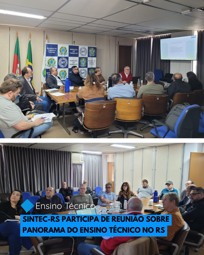 Na manhã desta quarta-feira, 8 de outubro, o SINTEC-RS participou de uma reunião promovida pela Superintendência Regional do Trabalho e Emprego, SRTE-RS, que teve como pauta o panorama do ensino técnico e da educação profissional no Rio Grande do Sul.