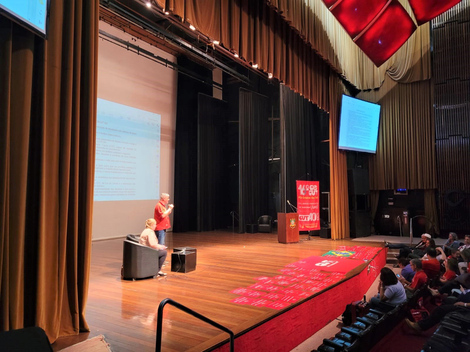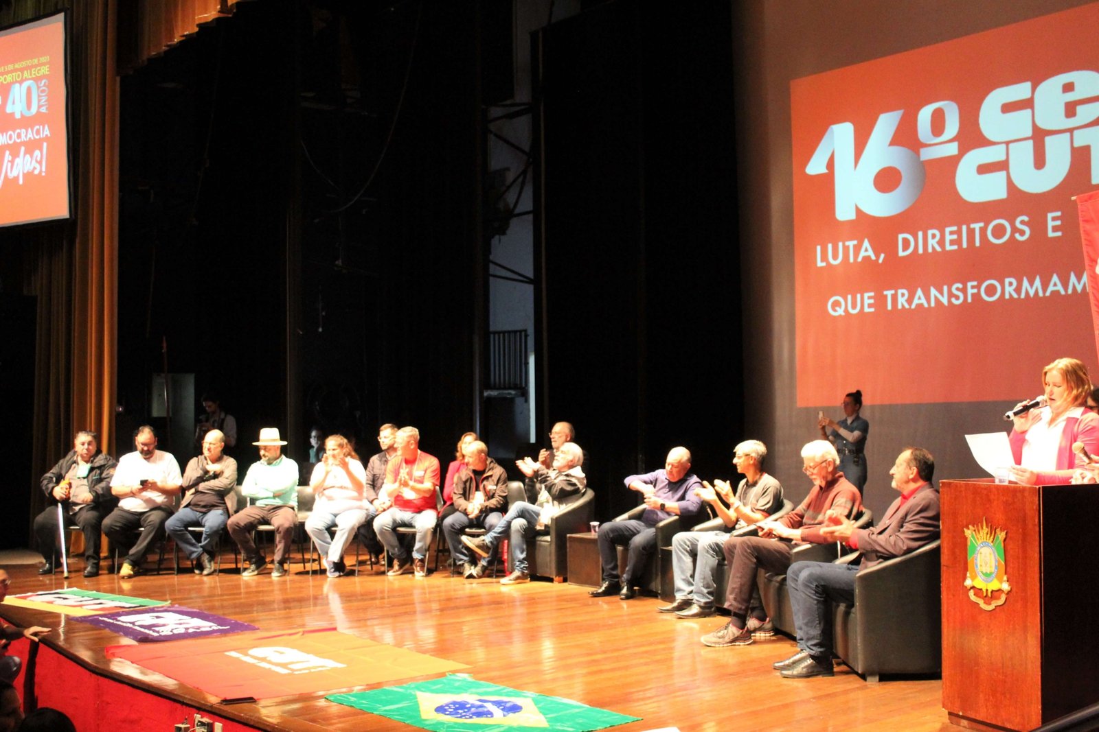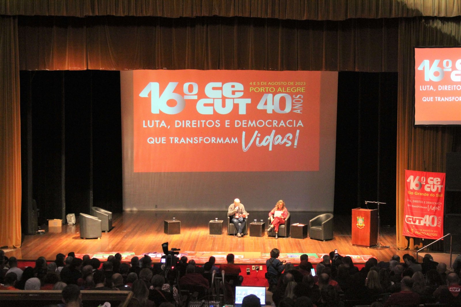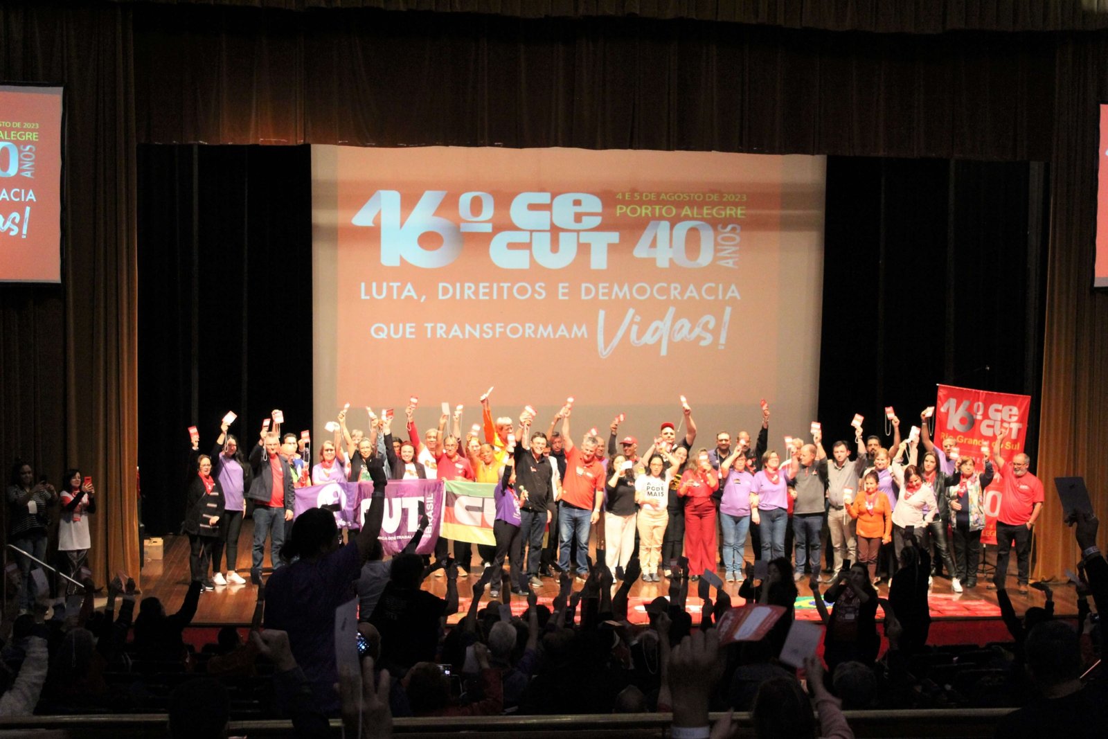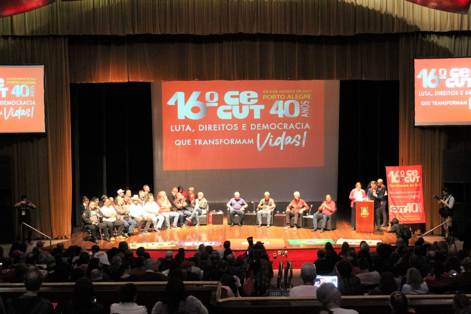 Nos dias 4 e 5 de agosto o SINTEC-RS participou do 16º Congresso Estadual da CUT do Rio Grande do Sul, CECUT-RS, realizado no Teatro Dante Barone, na Assembleia Legislativa. O congresso, com o tema “Luta, direitos e democracia transformam vidas”, reuniu mais de 400 delegados e delegadas, além de observadores e convidados, que acompanharam o balanço do último período da CUT-RS, a aprovação de resoluções sobre estratégias e um plano de lutas, bem como, a eleição da nova gestão para o mandato de 2023-2027.