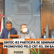 O diretor administrativo do SINTEC-RS, Paulo Motta, e o vice-presidente e diretor financeiro, Marcelo Valandro, participaram do evento.