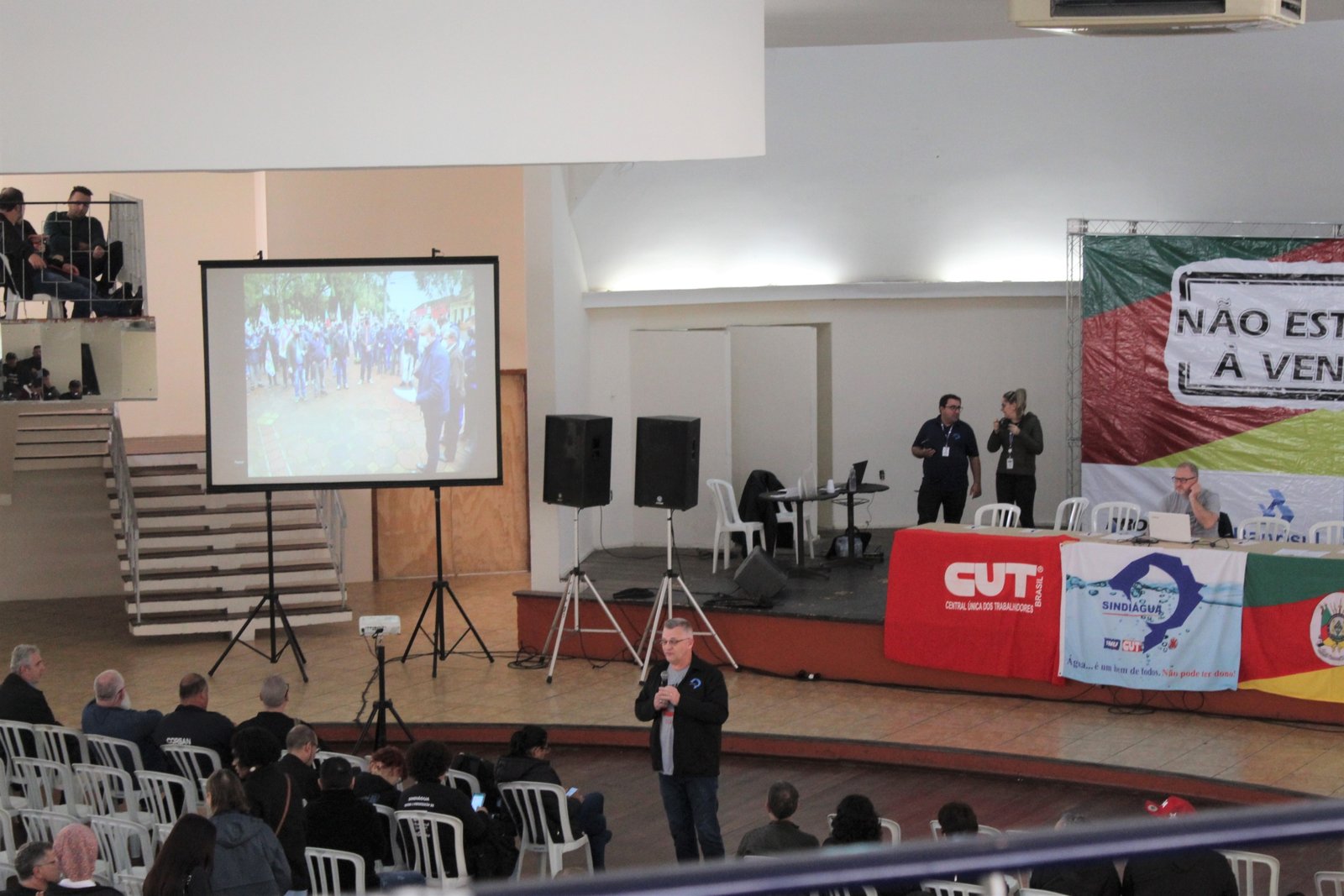 Mais cedo, na parte da manhã, os trabalhadores e trabalhadoras da Corsan participaram da assembleia geral extraordinária convocada para deliberar sobre o Acordo Coletivo de Trabalho 2022-2023, realizada no Clube Farrapos, em conjunto com o Sindiágua e o Sindaergs. Na ocasião, a categoria dos Técnicos e Técnicas Industriais deliberou pela aprovação da proposta – assim como as demais categorias presentes.
