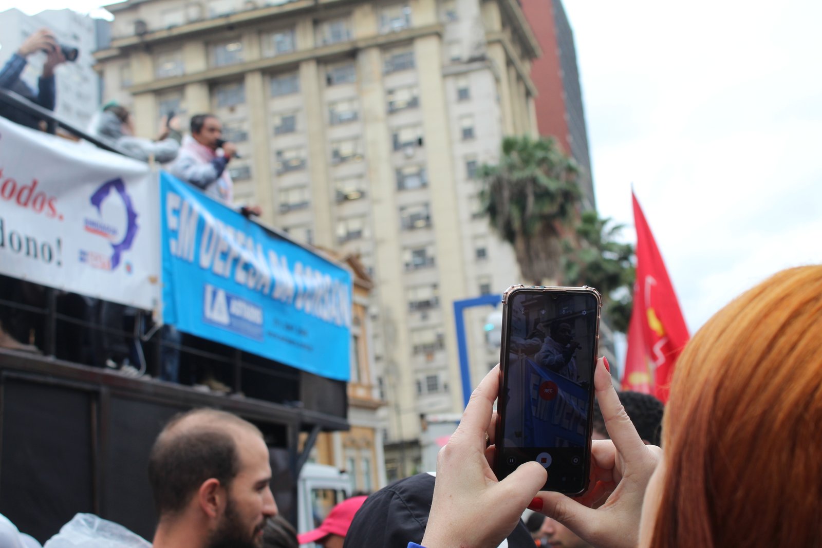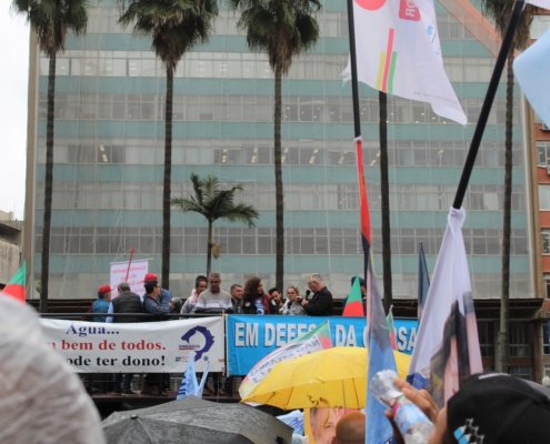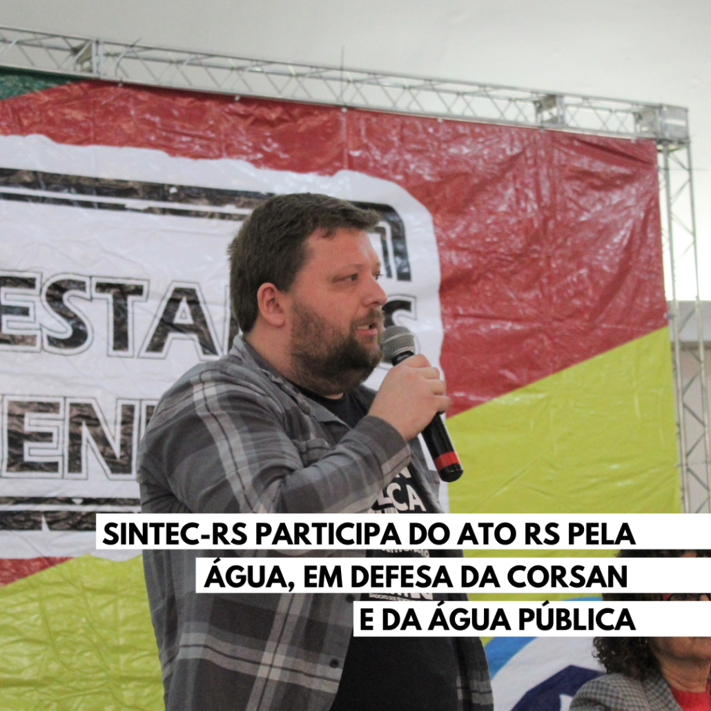 Na tarde desta quinta-feira, 22, o SINTEC-RS participou do ato “RS pela água”, em defesa da Corsan e da água pública. A manifestação reuniu servidores da Corsan, diversos movimentos sociais além dos candidatos ao governo do estado, Vieira da Cunha (PDT), Edegar Pretto (PT), candidatos ao legislativo federal, estadual, municipal e demais entidades como Sindiágua, SENGE-RS, Sindaergs, Funcorsan, MPA, MAB e Levante Popular da Juventude.