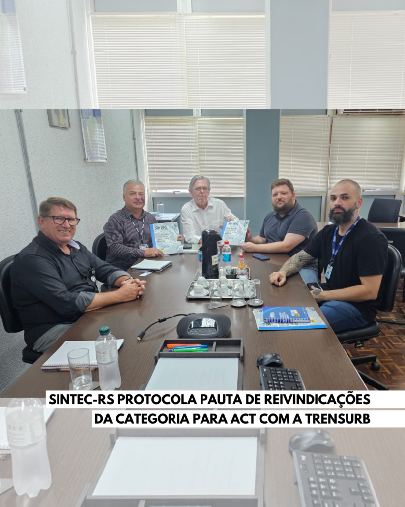 Na tarde desta quinta-feira, 20, o SINTEC-RS protocolou oficialmente a pauta de reivindicações da categoria junto à Trensurb. O documento é resultado da assembleia realizada com os profissionais, que definiram coletivamente os principais pontos a serem negociados no próximo Acordo Coletivo de Trabalho.