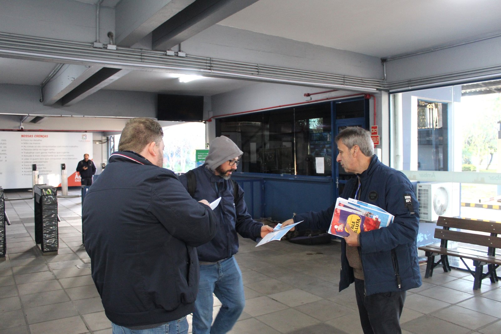 Na ocasião, também foram distribuídos materiais da campanha da CUT-RS pelo fim da escala 6×1, reforçando a articulação das entidades sindicais na defesa de jornadas de trabalho mais humanas e equilibradas, com melhores condições de vida para a classe trabalhadora.
