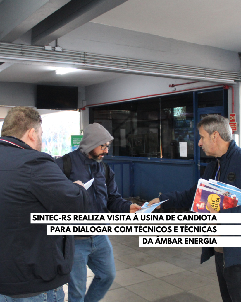 Na manhã do dia 11 de junho, o SINTEC-RS esteve presente na Usina de Candiota, operada pela Âmbar Energia, para dialogar diretamente com os Técnicos e Técnicas Industriais que atuam no local. A visita teve como objetivo fortalecer o vínculo com a categoria, apresentar o trabalho que vem sendo desenvolvido pelo sindicato e ouvir as demandas dos profissionais.