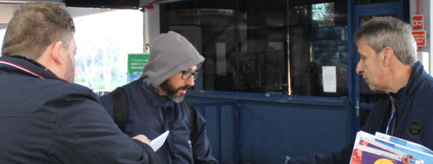 Os diretores César Borges e Paulo Motta representaram o sindicato durante a atividade, que incluiu a entrega do boletim informativo mais recente. O material destaca as principais ações do SINTEC-RS em defesa dos direitos dos trabalhadores e trabalhadoras, com ênfase na luta pela manutenção das atividades da usina e por uma transição energética justa, que respeite os empregos e a importância estratégica da geração térmica na matriz energética nacional.