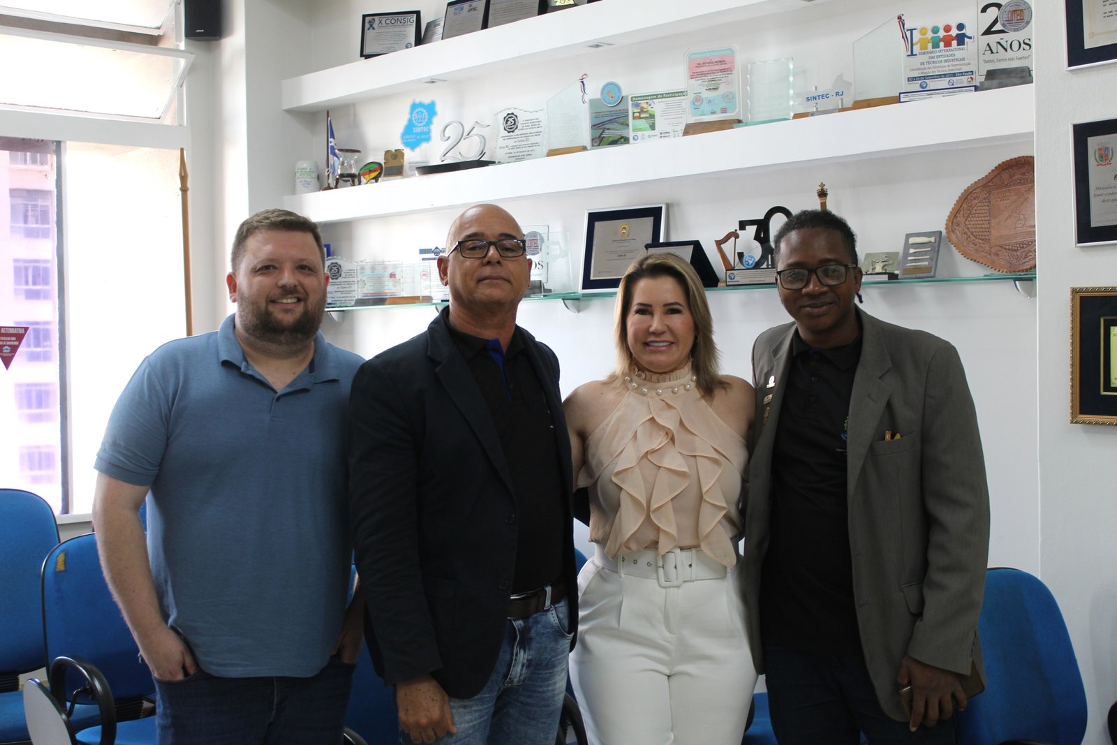 Ainda durante a manhã, o SINTEC-RS recebeu a visita dos representantes do CRT-ES, Valmir Xavier Martins, presidente, e Lucas Muniz, procurador jurídico, e da representante do CRT-04, Quelli da Silva, conselheira titular.
