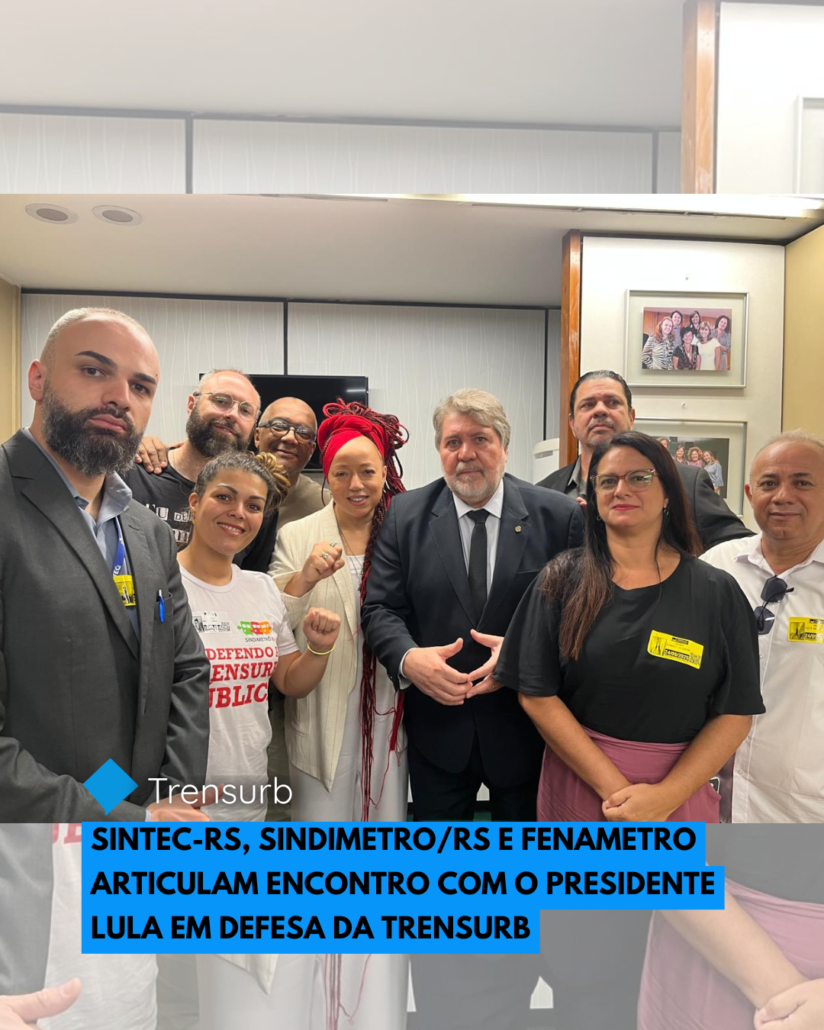 SINTEC-RS, SINDIMETRO/RS e FENAMETRO articulam encontro com o presidente Lula em defesa da Trensurb