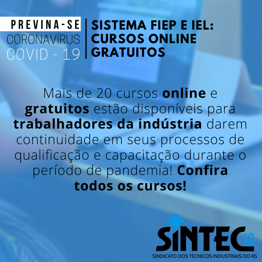 Mais de 20 cursos online e gratuitos estão disponíveis para trabalhadores da indústria darem continuidade em seus processos de qualificação e capacitação durante o período de distanciamento social imposto pela pandemia do novo coronavírus.