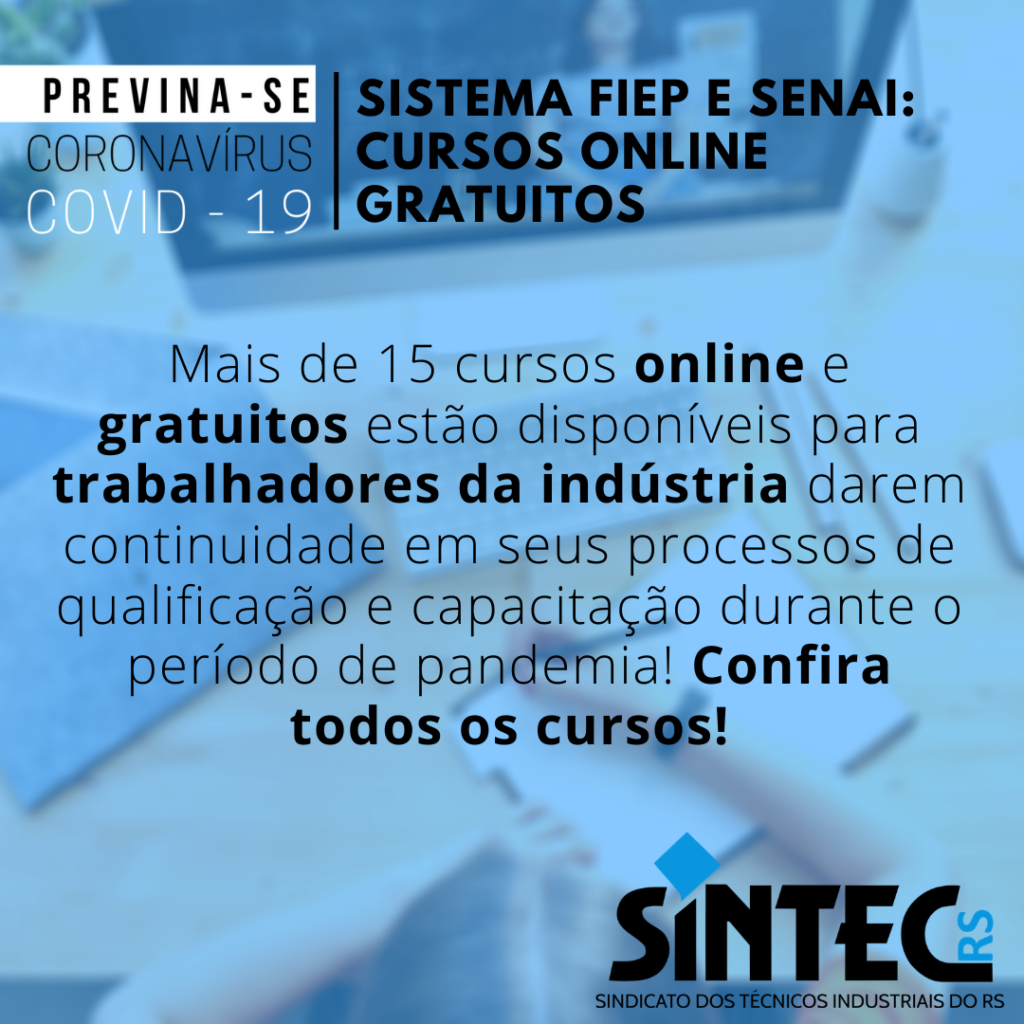 Mais de 15 cursos online e gratuitos estão disponíveis para trabalhadores da indústria darem continuidade em seus processos de qualificação e capacitação durante o período de distanciamento social imposto pela pandemia do novo coronavírus.