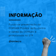Na última terça-feira, 18, uma Ação Direta de Inconstitucionalidade (ADI 7067) foi protocolada no Supremo Tribunal Federal, contra a venda da Corsan pelo governo do Rio Grande do Sul. A iniciativa foi patrocinada pelo Fundo de Preservação da CORSAN Pública, liderado pelo SINTEC-RS e pelo Senge-RS, e protocolada pelo PDT Nacional, em negociação realizada pelos sindicatos em função da legitimidade do partido politico para ações dessa natureza.