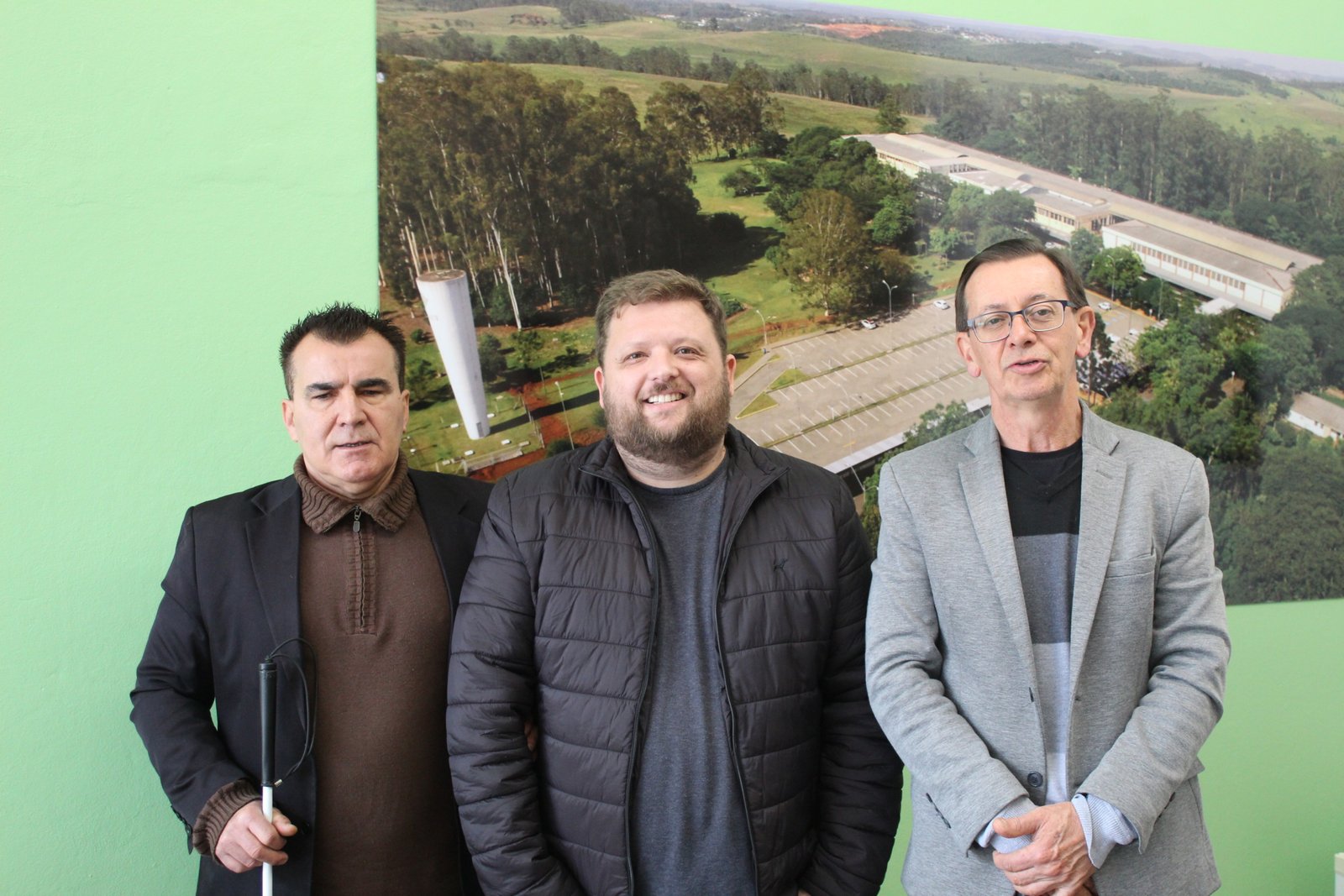 Na parte da manhã, a reunião com o diretor da Escola também contou com a participação de Santos Fagundes, coordenador do gabinete do senador Paulo Paim no RS e representante do movimento das pessoas com deficiência visual, para propor a realização de um seminário voltado para projetos de pesquisa que envolvam acessibilidade para cegos e pessoas com deficiência.