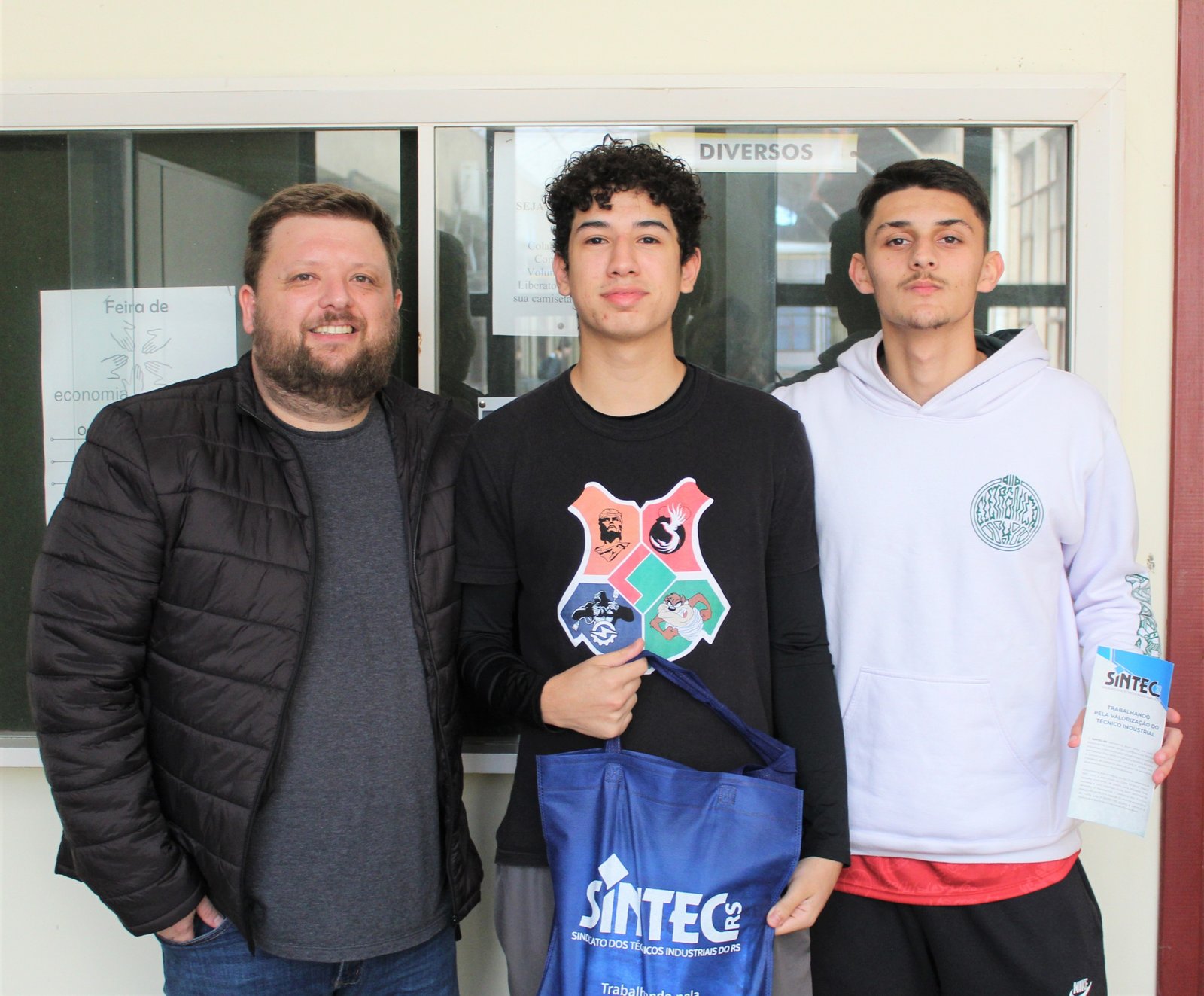 Nesta terça-feira, 8, o SINTEC-RS esteve na Escola Técnica Fundação Liberato Salzano para conversar com o diretor Ramon Hans e com o presidente do grêmio estudantil, Rafael Ribeiro. O presidente do sindicato, César Borges, participou das agendas.