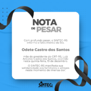 Neste momento de imensa dor, o SINTEC-RS manifesta sua solidariedade aos familiares, amigos e a todos que conviveram com Paulo e puderam testemunhar sua dedicação à categoria.