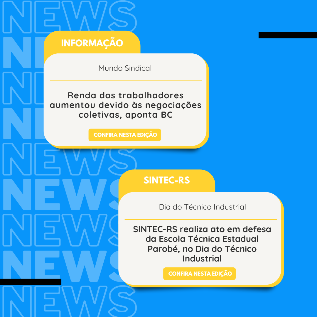 A edição de abril do informativo SINTEC-RS News já está disponível! Confira aqui a seleção de notícias do mês.