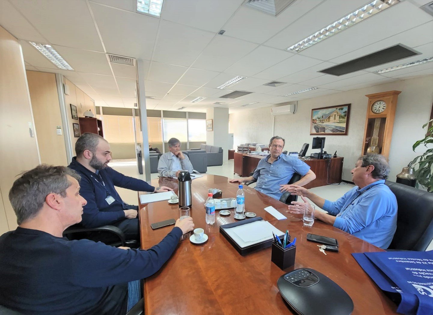 Na manhã desta segunda-feira, 10, o SINTEC-RS realizou reunião com a nova diretoria da Trensurb, para apresentar a entidade e tratar de assuntos de interesse dos Técnicos e Técnicas Industriais da empresa. Na ocasião, César Borges, presidente do sindicato, Fábio Menger, vice-presidente, e Lucas Kiekow Silveira, delegado, participaram da reunião com a diretora de Administração e Finanças, Vanessa da Rocha.