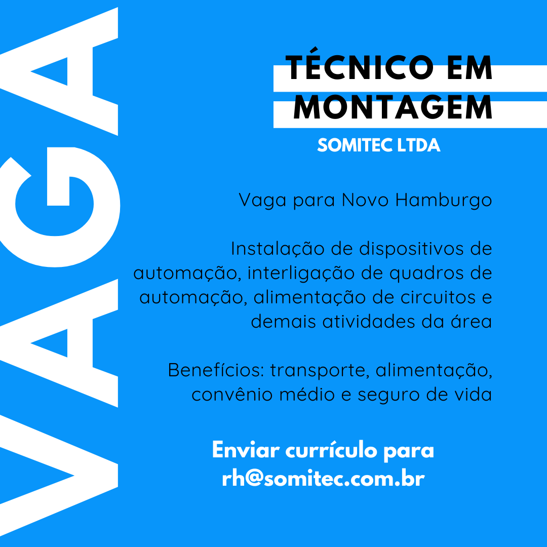 Interessados devem enviar currículo para o e-mail rh@somitec.com.br.