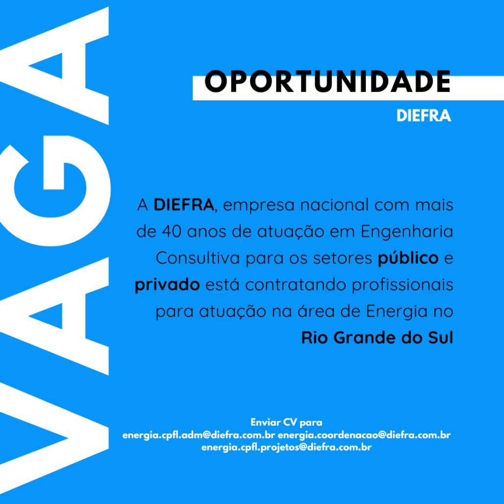 Vaga de emprego: DIEFRA está contratando profissionais para atuação na área de Energia no Rio Grande do Sul
